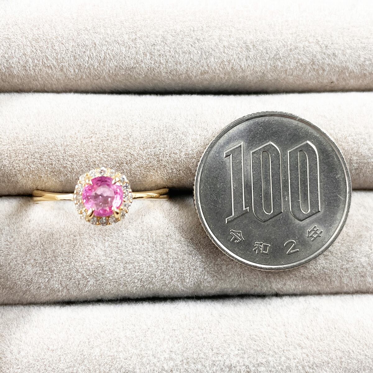 存在感抜群のピンクサファイアが主役の取り巻きリング。