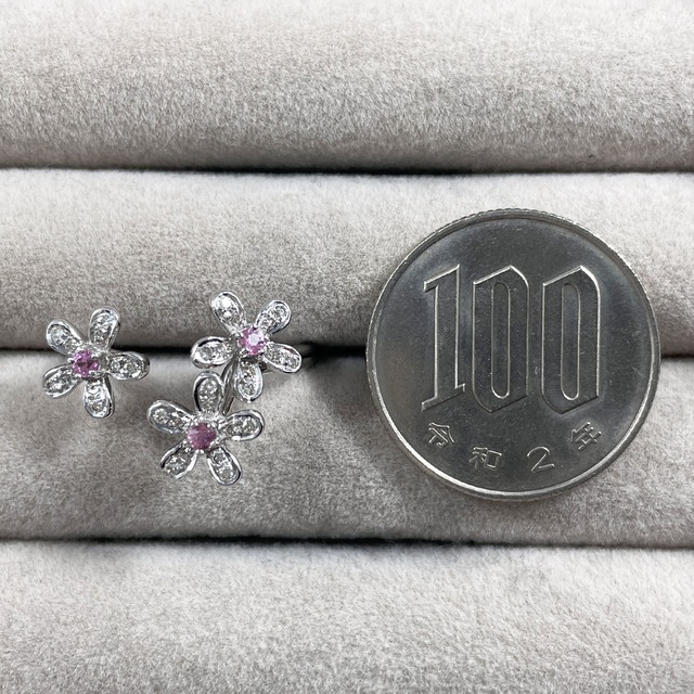 鮮やかなピンクサファイアがアクセントになった、春らしい華やかなアイテムです♪