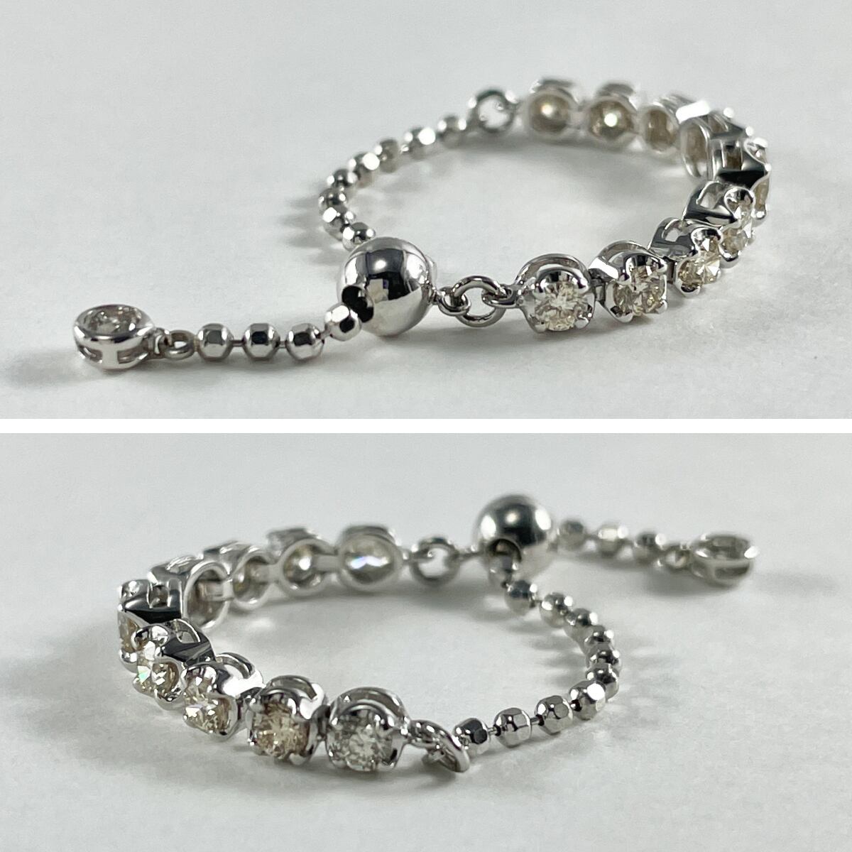 多面カットのボールチェーンにダイヤモンドの組み合わせが個性的なエタニティタイプのリング。