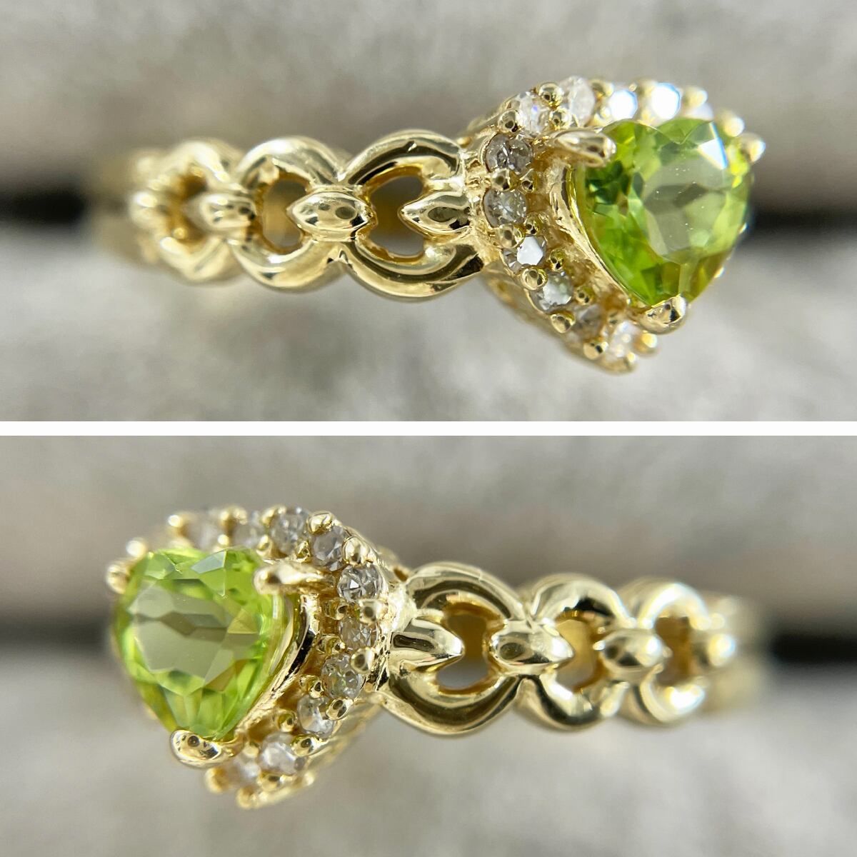 K18 天然ペリドット 0.54ct 天然ダイヤモンド 0.13ct リング