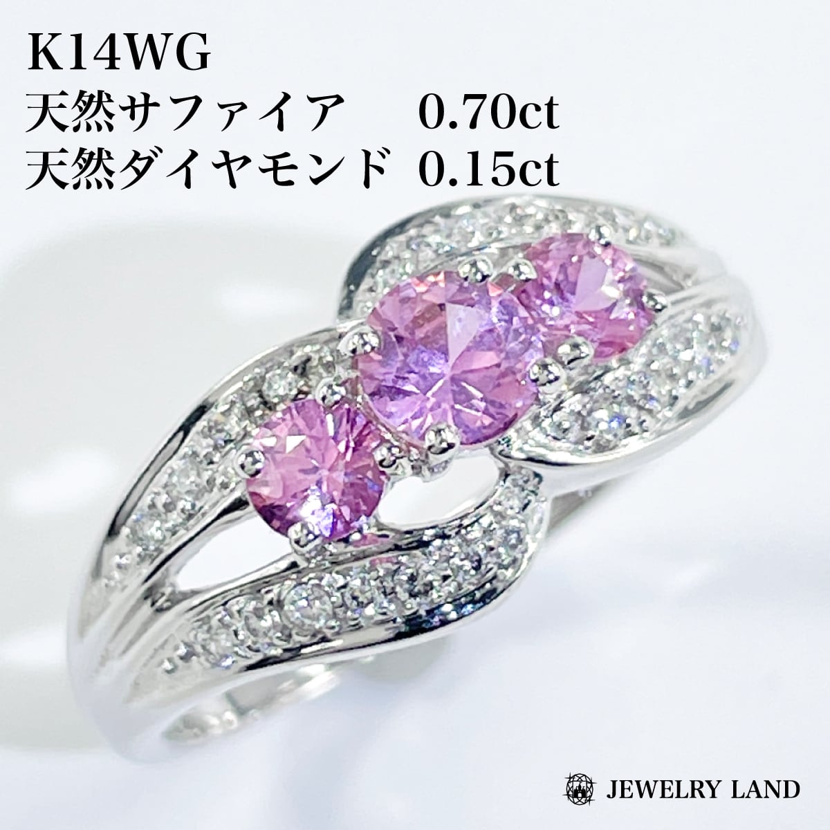 K14WG 天然ピンクサファイア 0.70ct ダイヤ 0.15ct リング