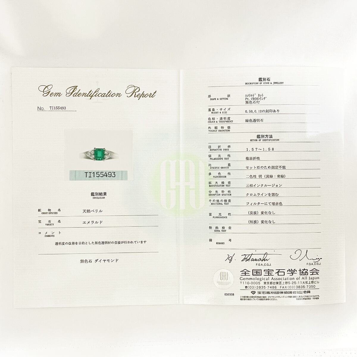 Pt900 天然エメラルド 0.50ct 天然ダイヤモンド 0.12ct リング