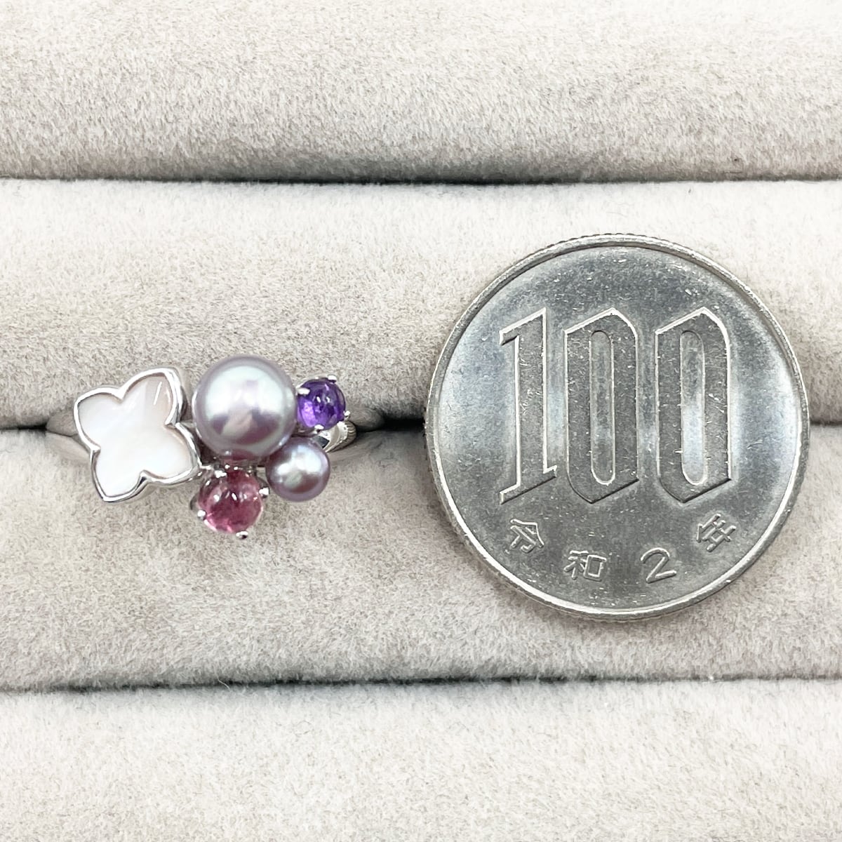 【 TASAKI 】K18WG パール シェル アメジスト トルマリン リング