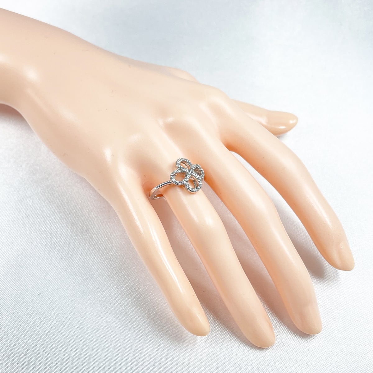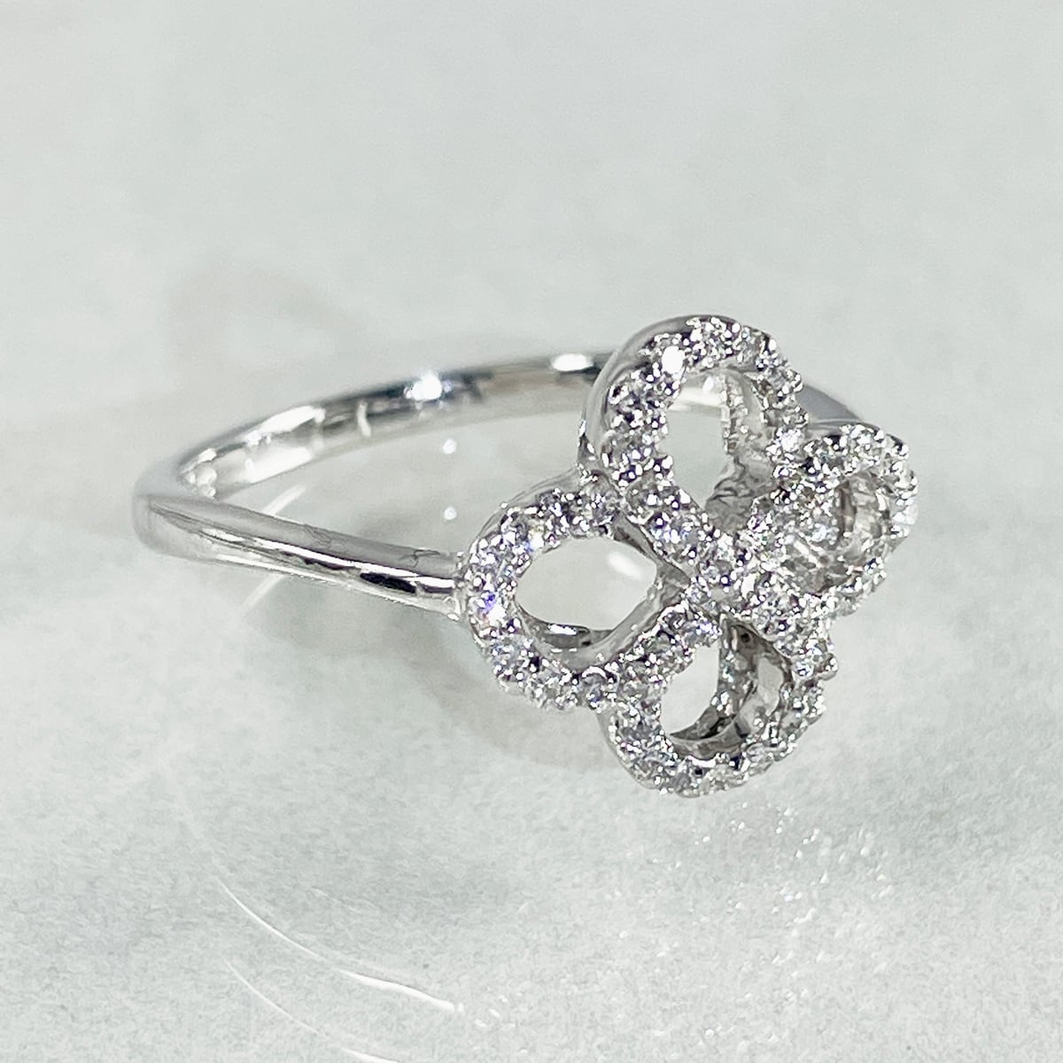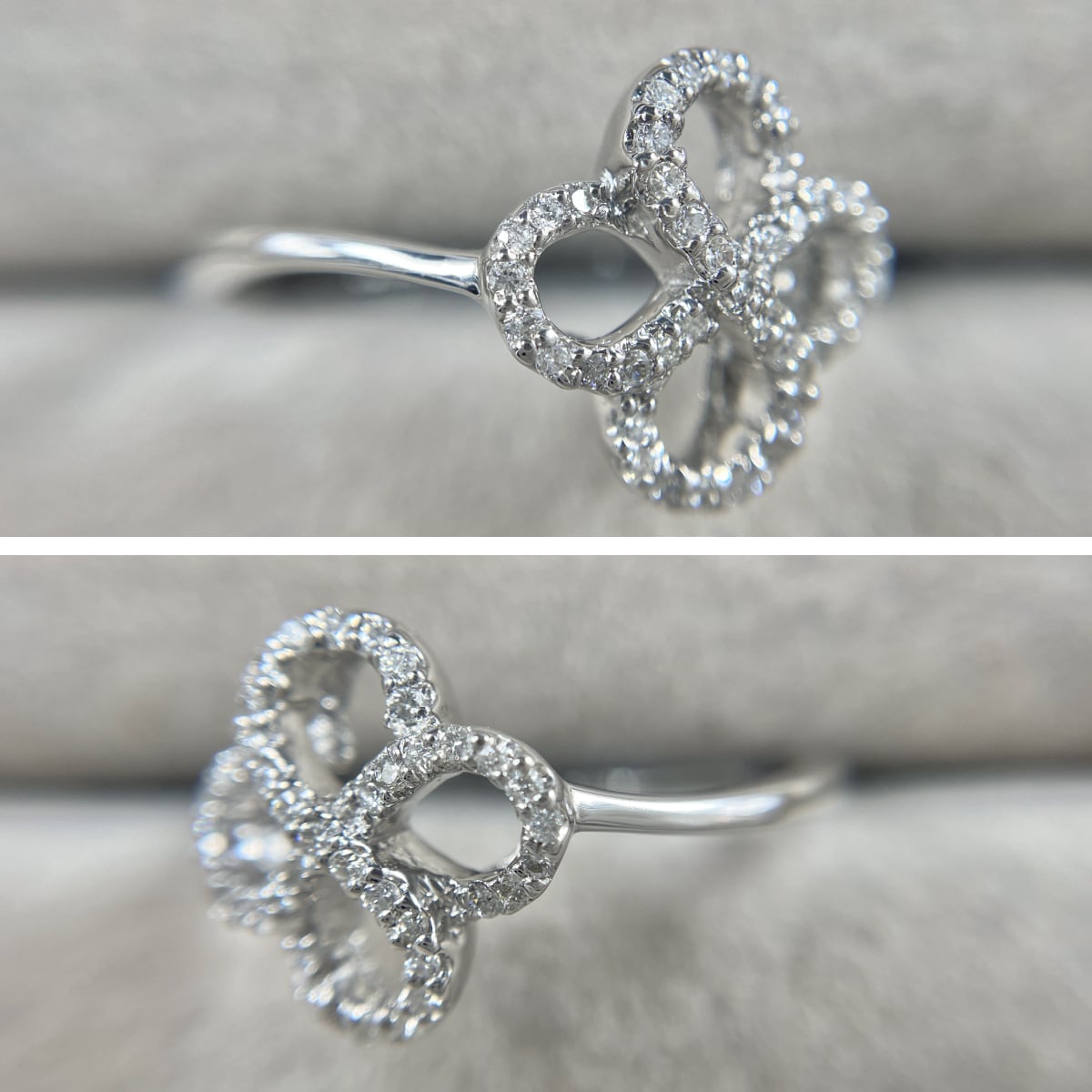 丸みのあるクローバーモチーフに曲線を描いたアームが女性らしいダイヤモンドのリング。