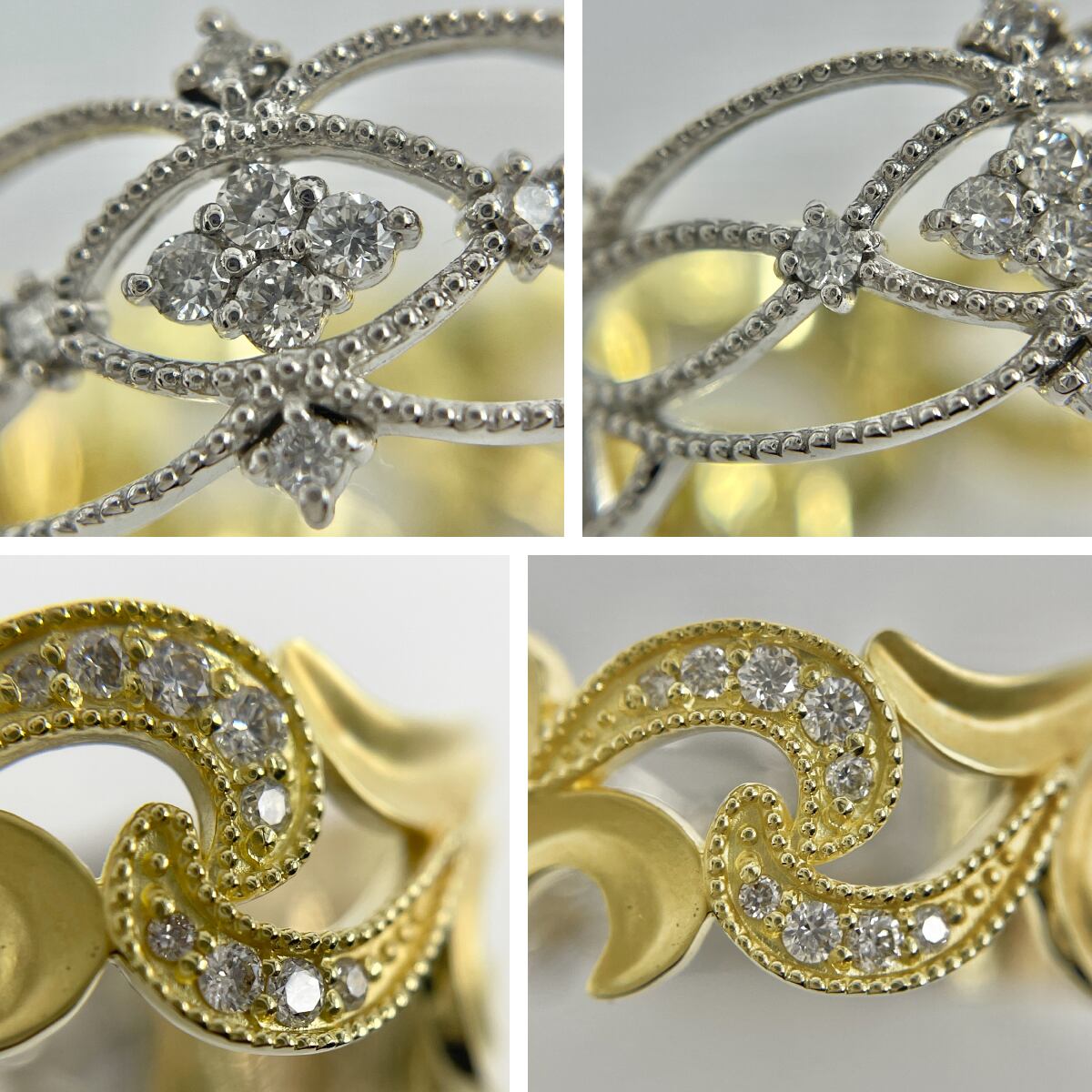 繊細な透かし模様が美しく、着用する向きによって様々な表情を魅せてくれるアート作品のようなアイテムです。