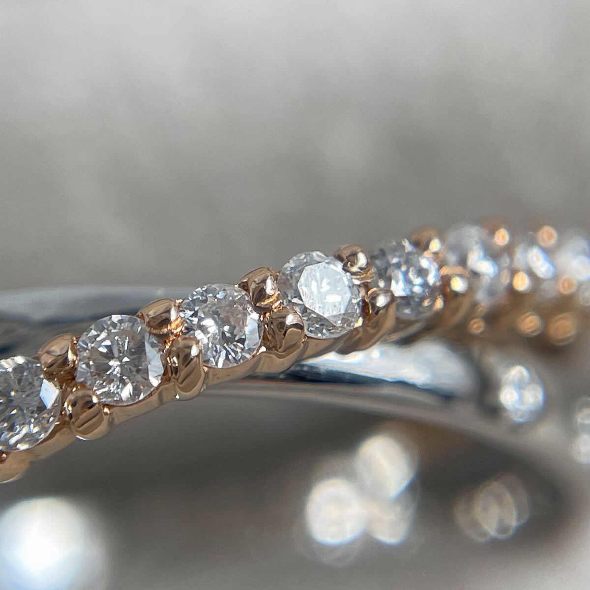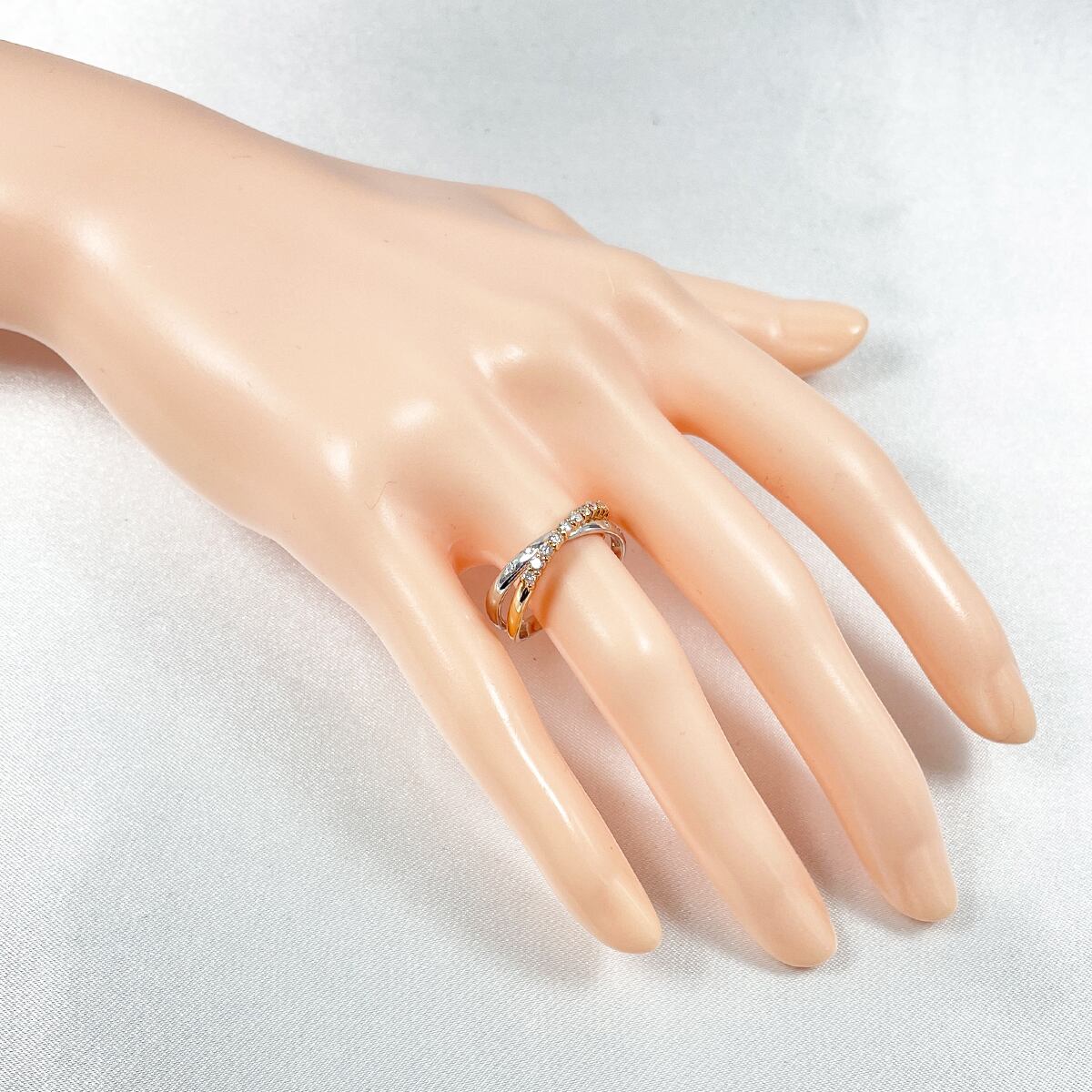 プラチナとピンクゴールドのさり気ないバイカラーが上品なX字のリング。