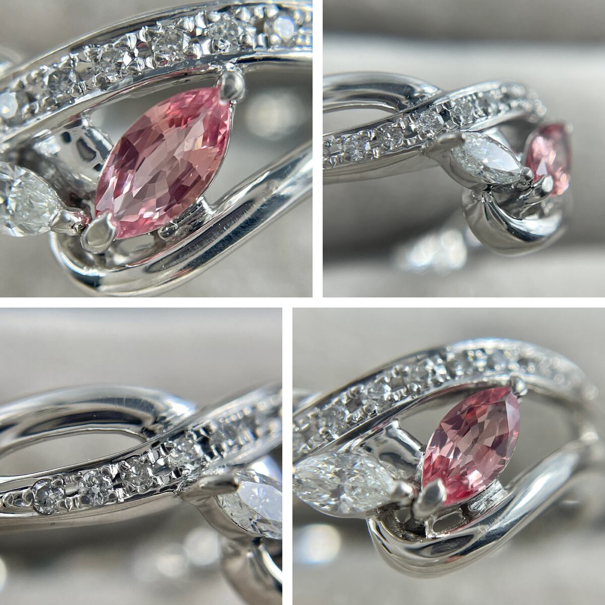 Pt900 天然パパラチアサファイア 0.255ct ダイヤモンド 0.17ct