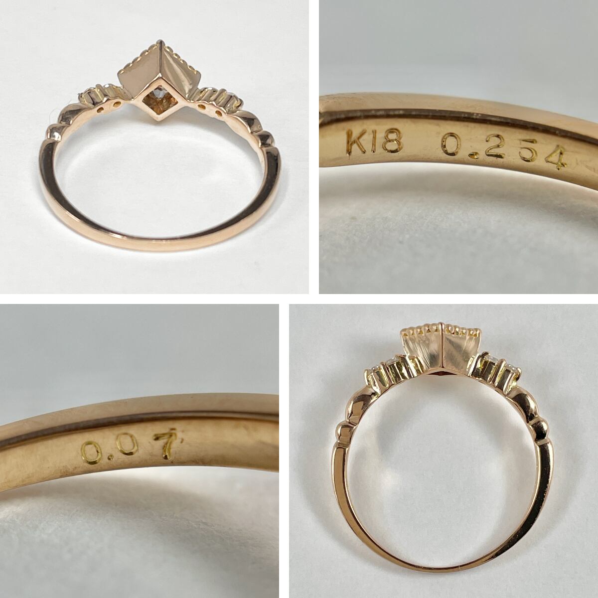 K18PG 天然ダイヤモンド 0.254ct 0.07ct リング