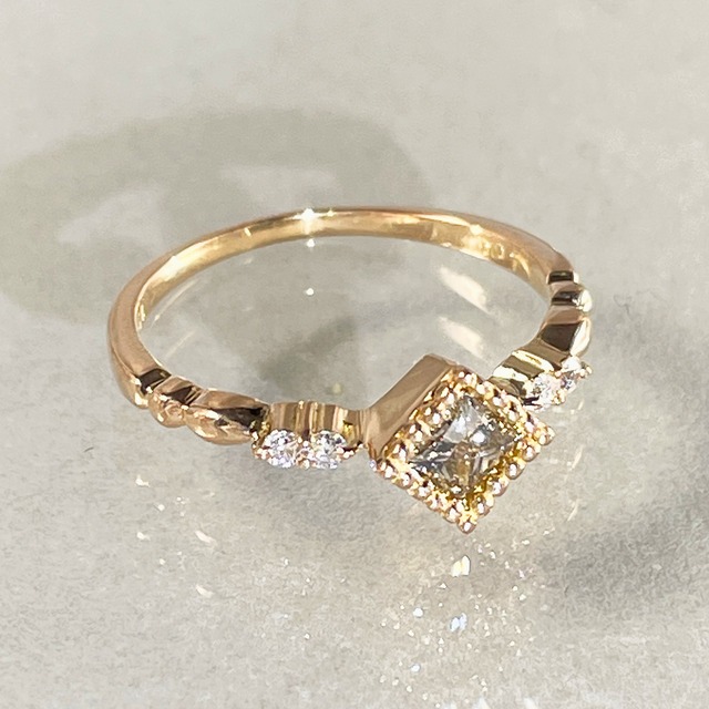 アンティーク調のミルグレインが印象的なダイヤモンドリング。