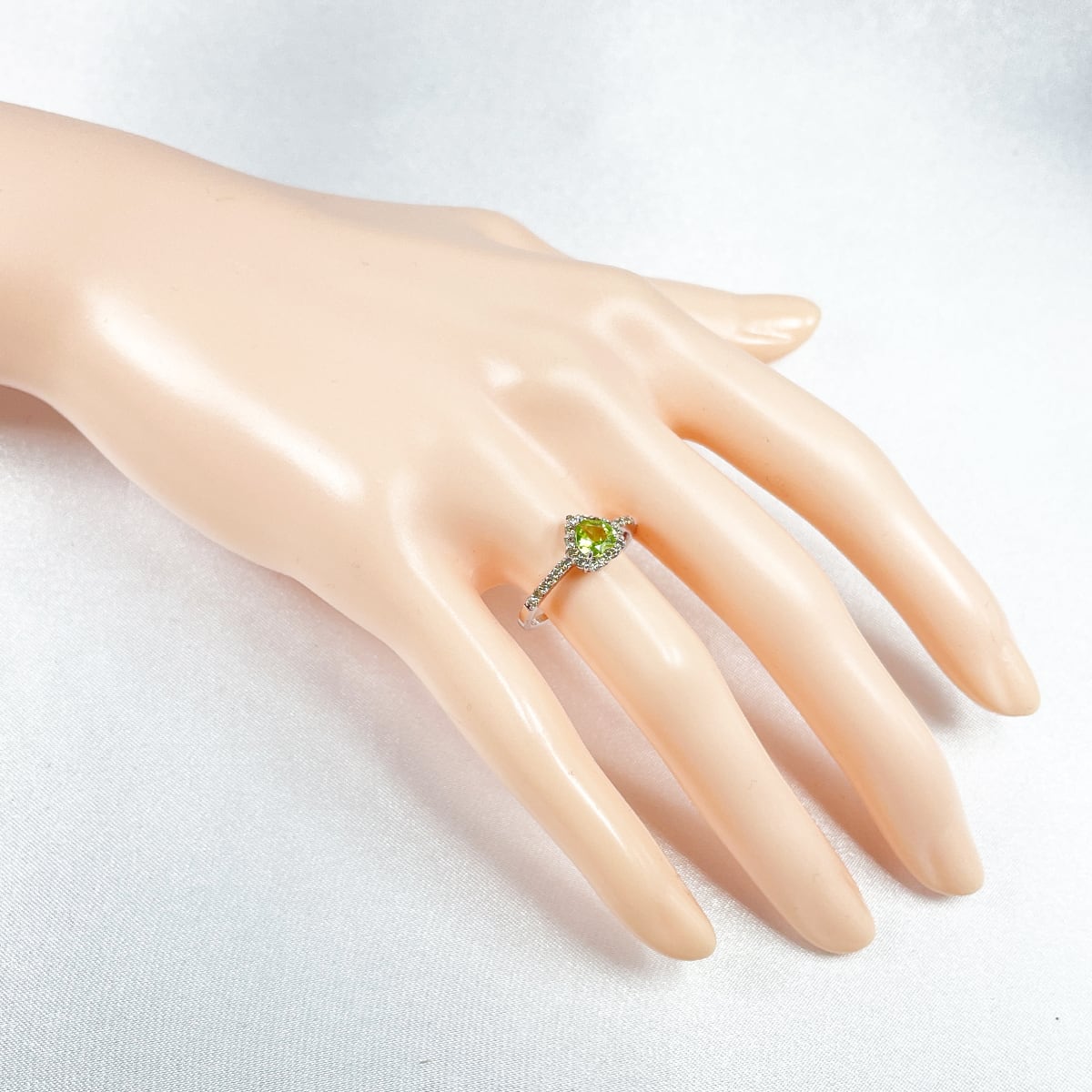 鮮やかなハートシェイプのペリドットが愛らしく輝くリング。