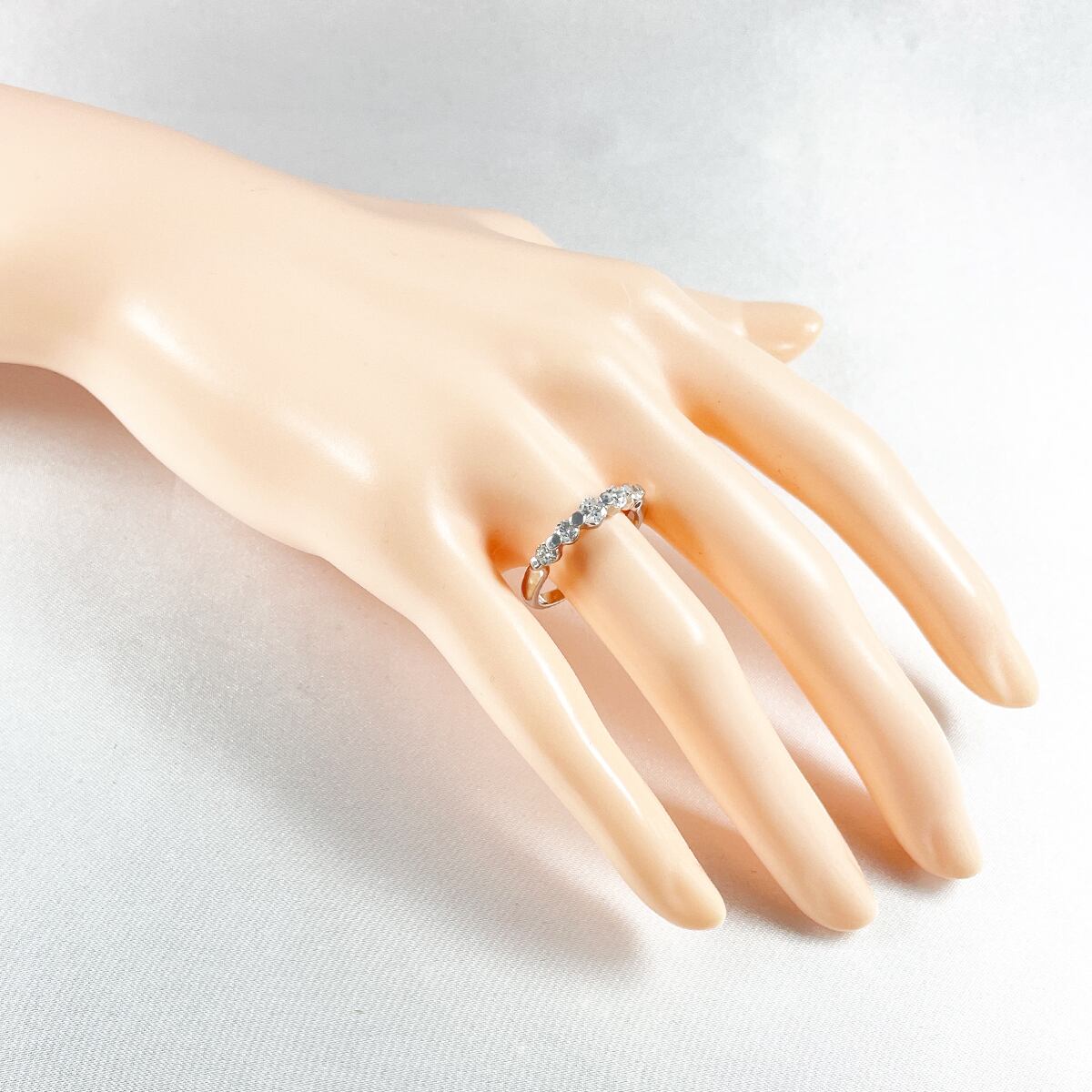 大小のダイヤモンドがリズミカルに並ぶ、上品なハーフエタニティリング。