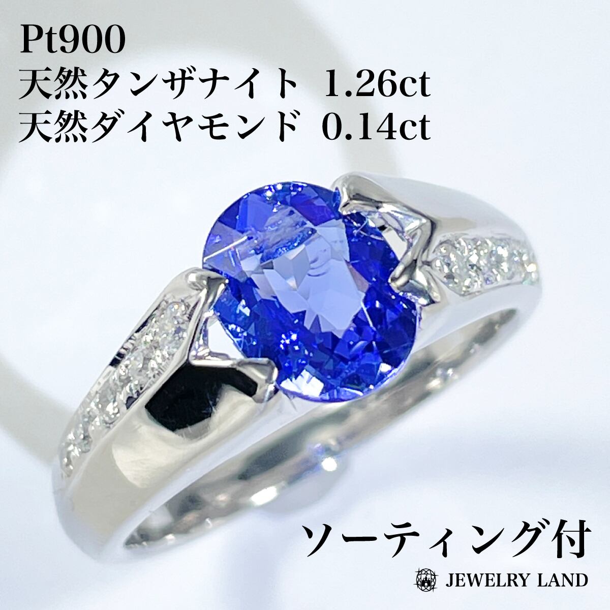 Pt900 天然タンザナイト 1.26ct ダイヤモンド 0.14ct リング