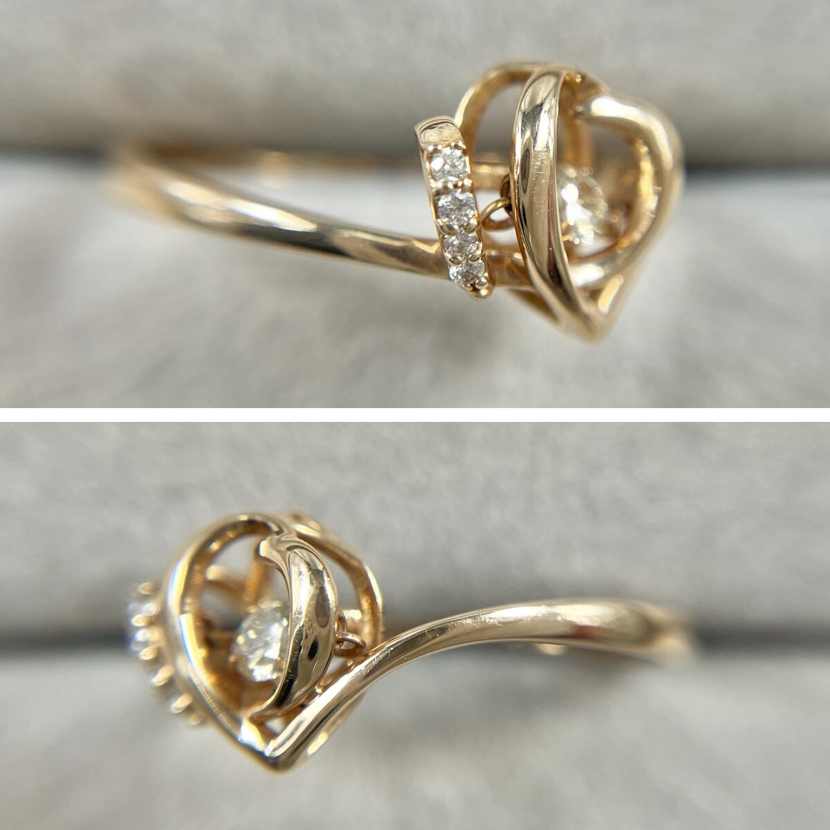 可憐なハートの中心でダイヤが踊るダンシングストーンのリング。