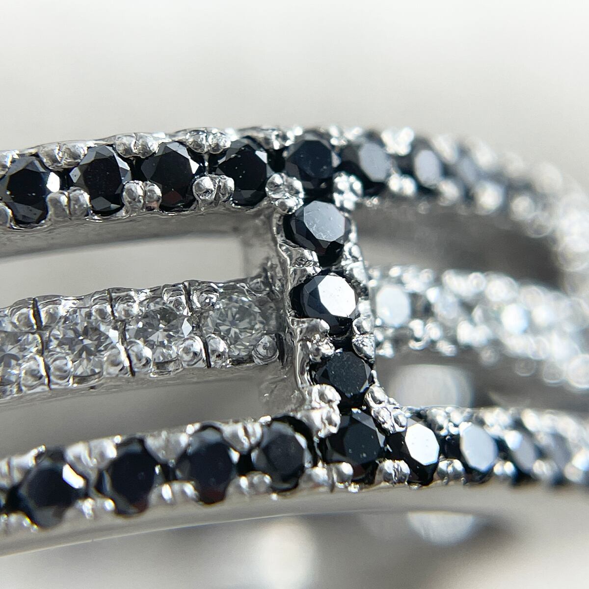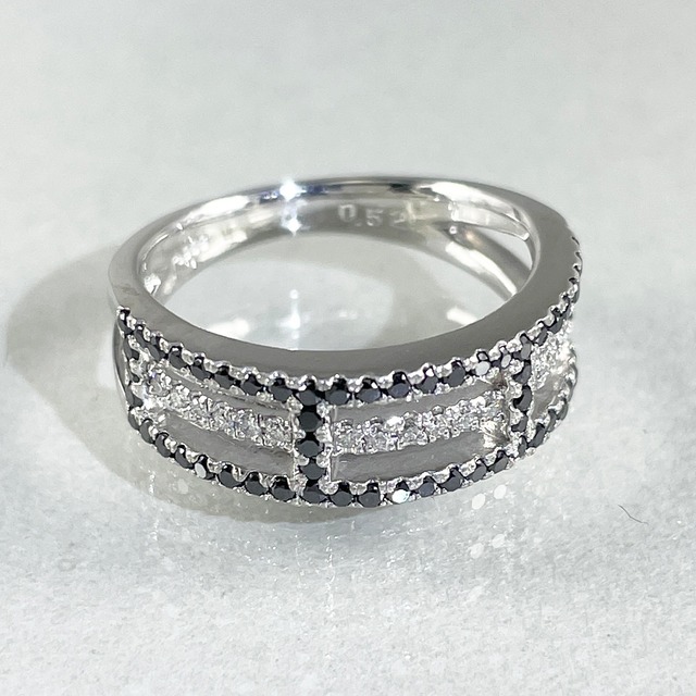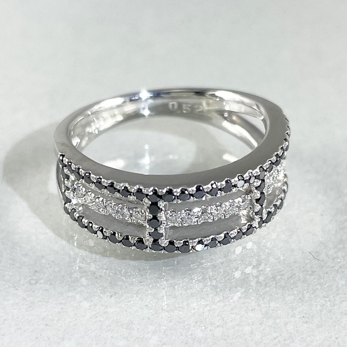 ブラックダイヤとホワイトダイヤが織りなすモダンなデザインのリング。