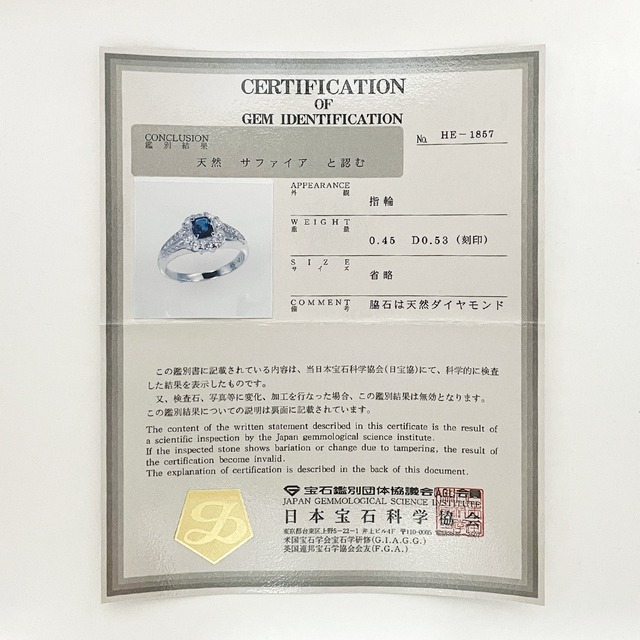 Pt900 天然サファイア 0.45ct 天然ダイヤモンド 0.53ct リング