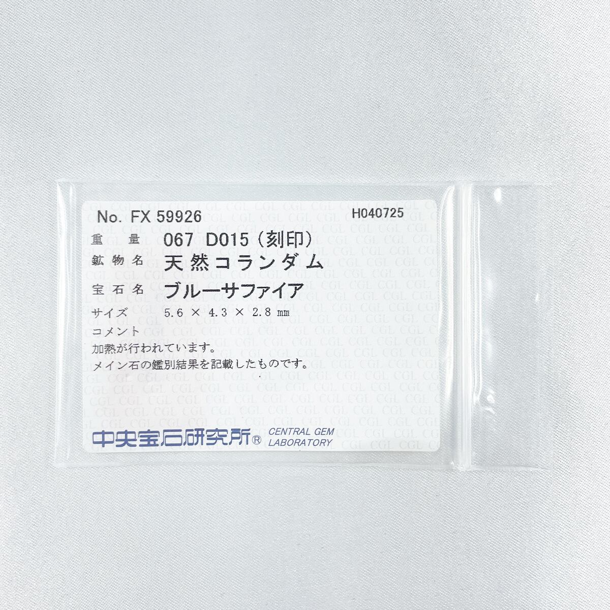 Pt900 天然サファイア 0.67ct 天然ダイヤモンド 0.15ct リング