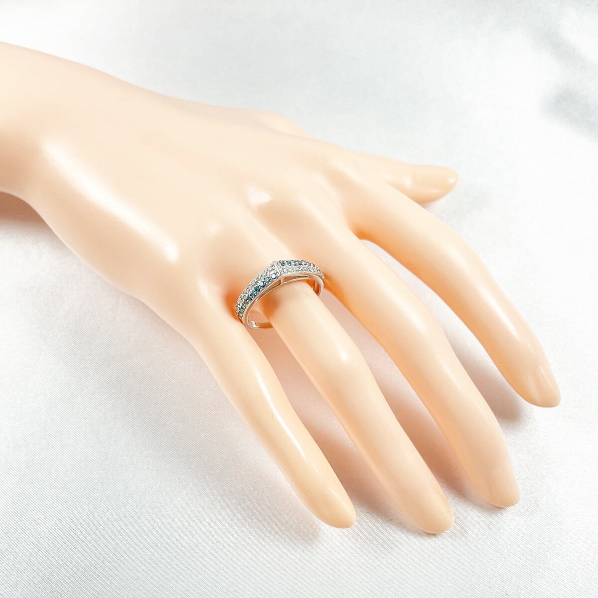 ブルーダイヤモンドとホワイトダイヤモンドが織りなす、美しいコントラストのパヴェリング。