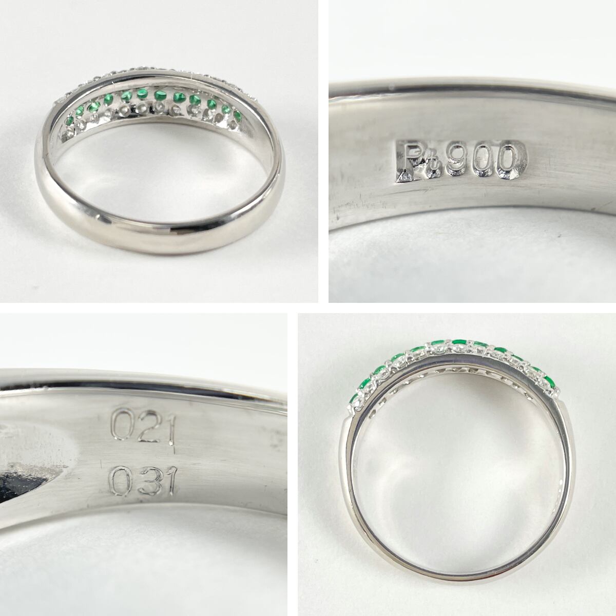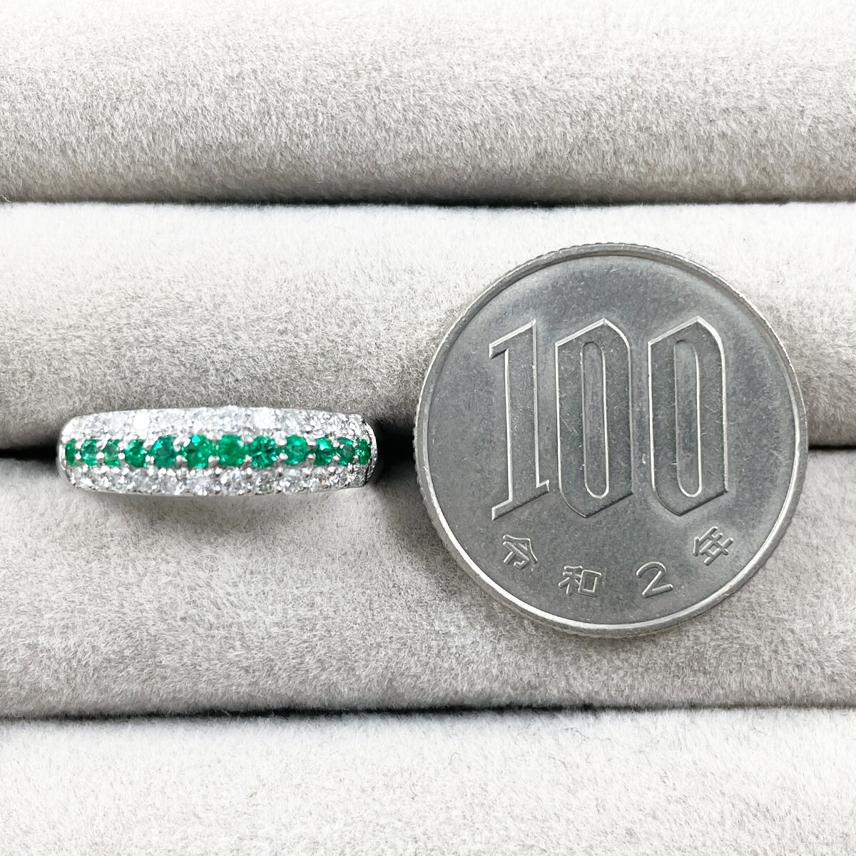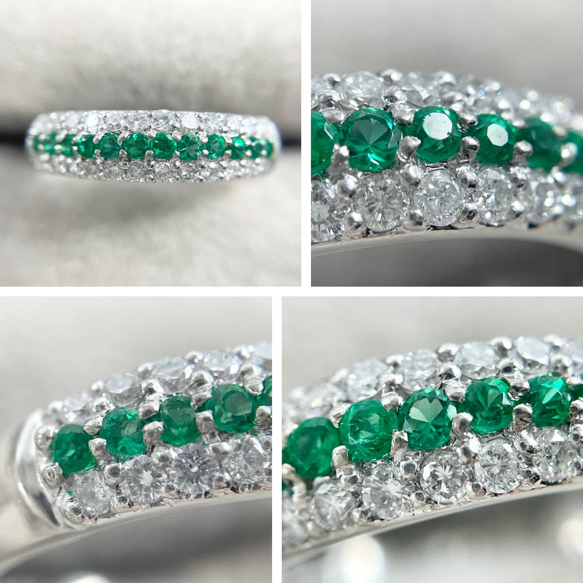 Pt900 天然エメラルド 0.21ct ダイヤ 0.31ct パヴェリング
