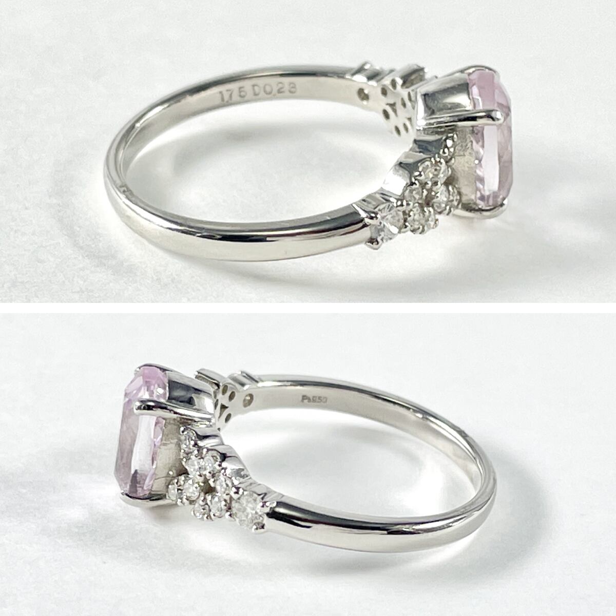Pt950 天然クンツァイト 1.75ct ダイヤモンド 0.23ct リング