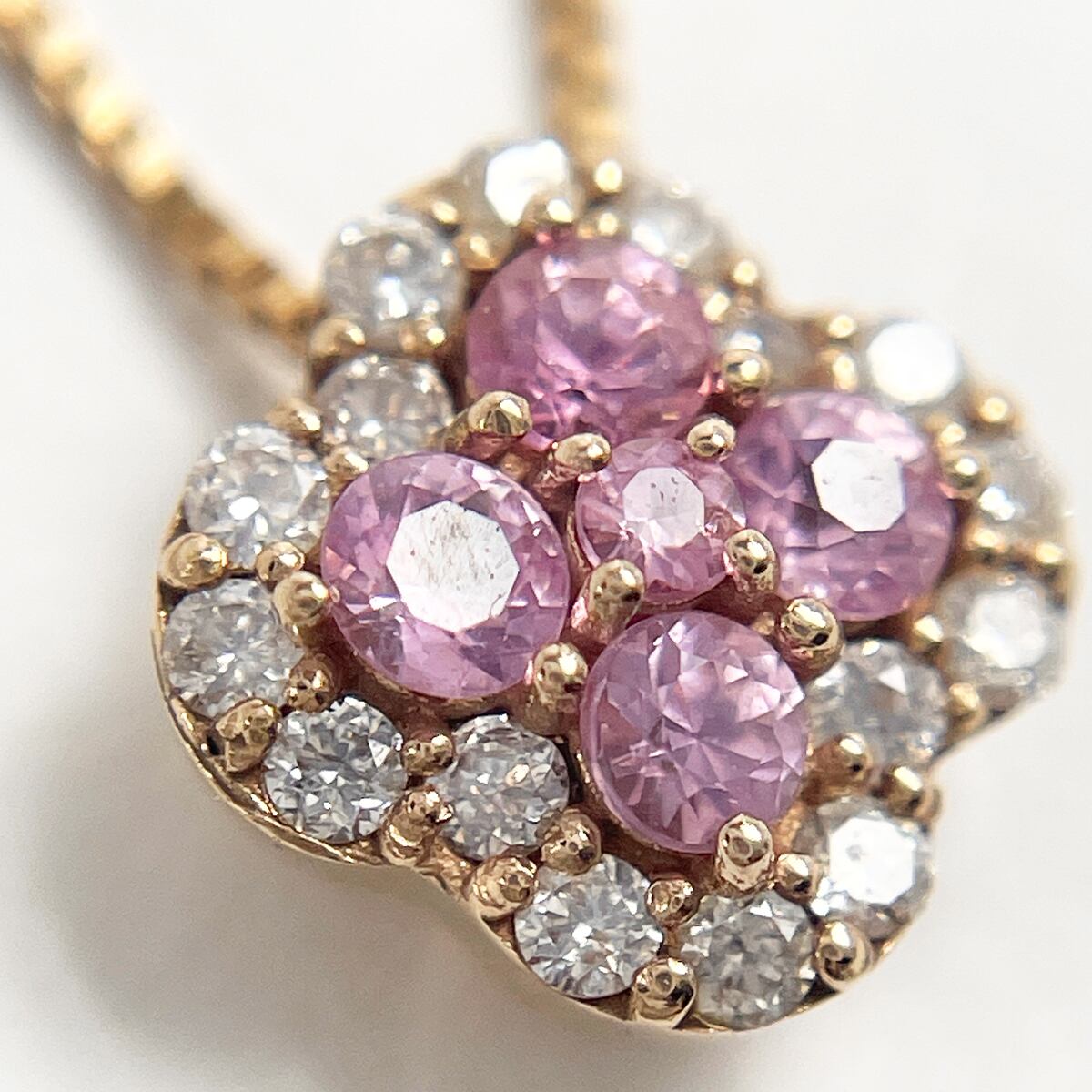 優しいピンクがきらめくサファイアのフラワーデザインペンダント。