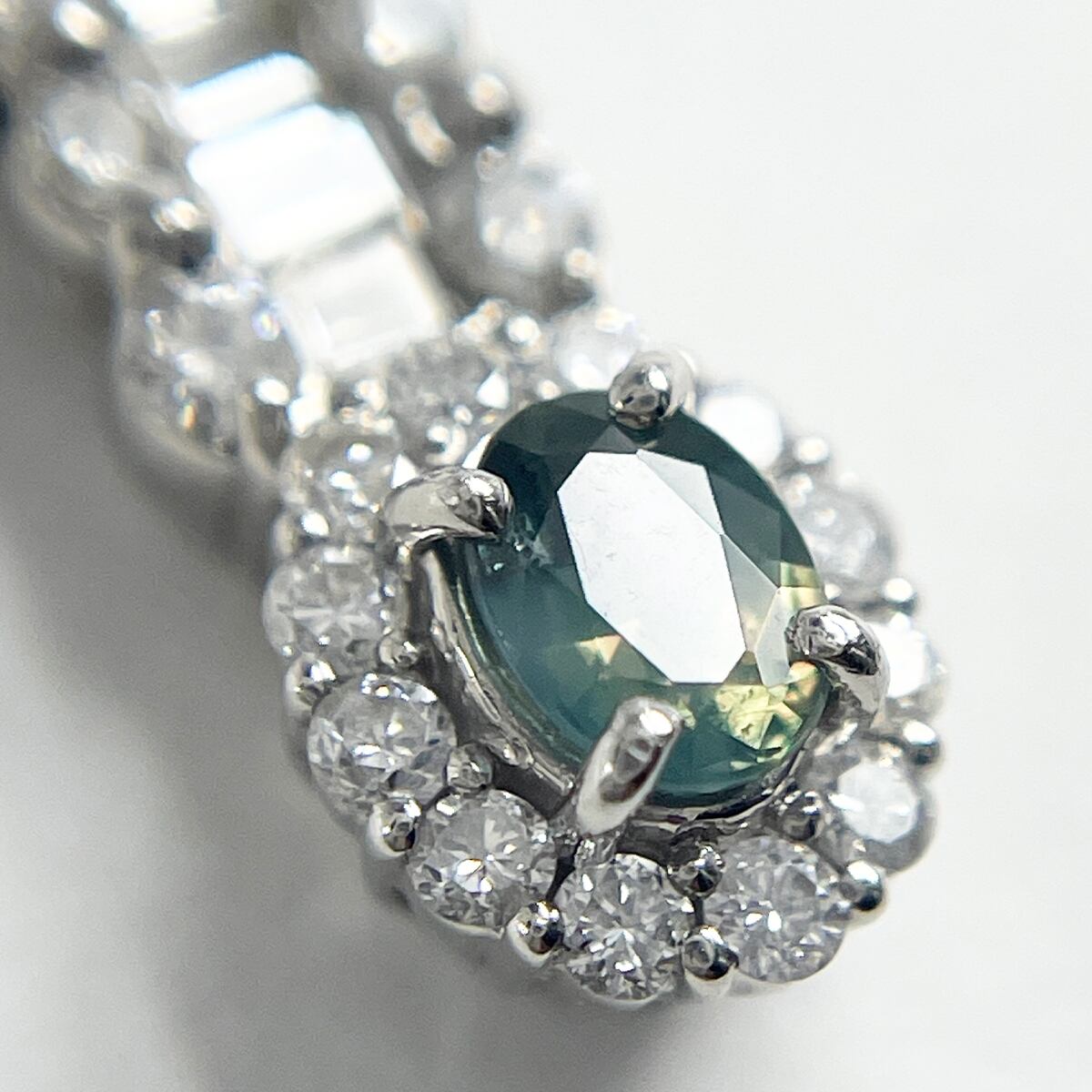光の加減で色が変わるアレキサンドライトのペンダント。