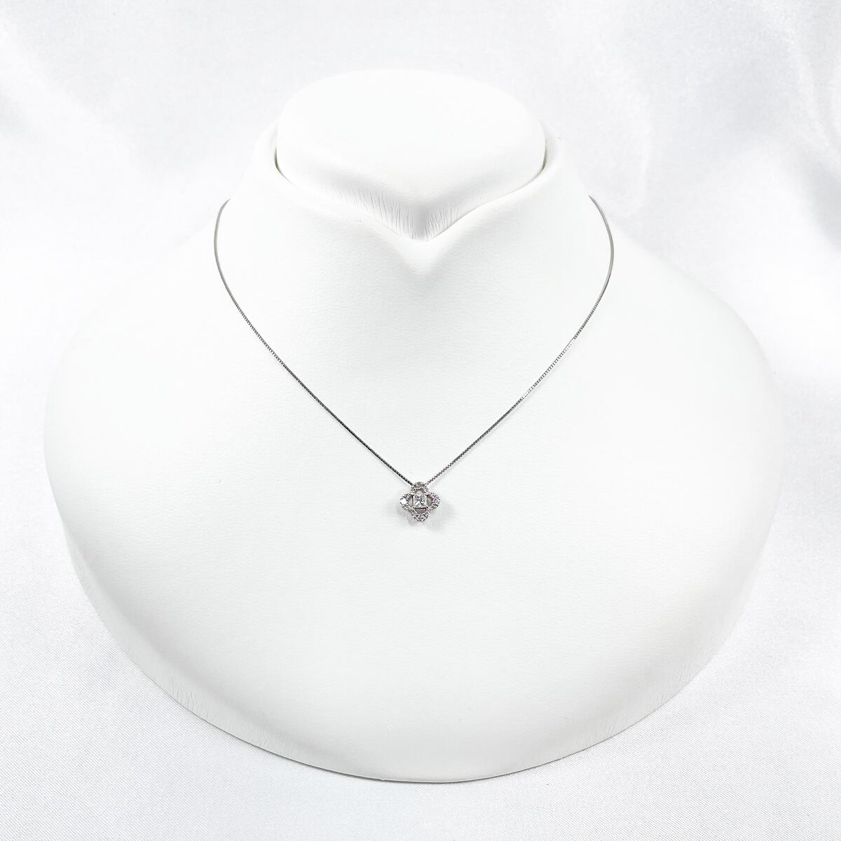 キラキラのプリンセスカットダイヤが上品なペンダント。