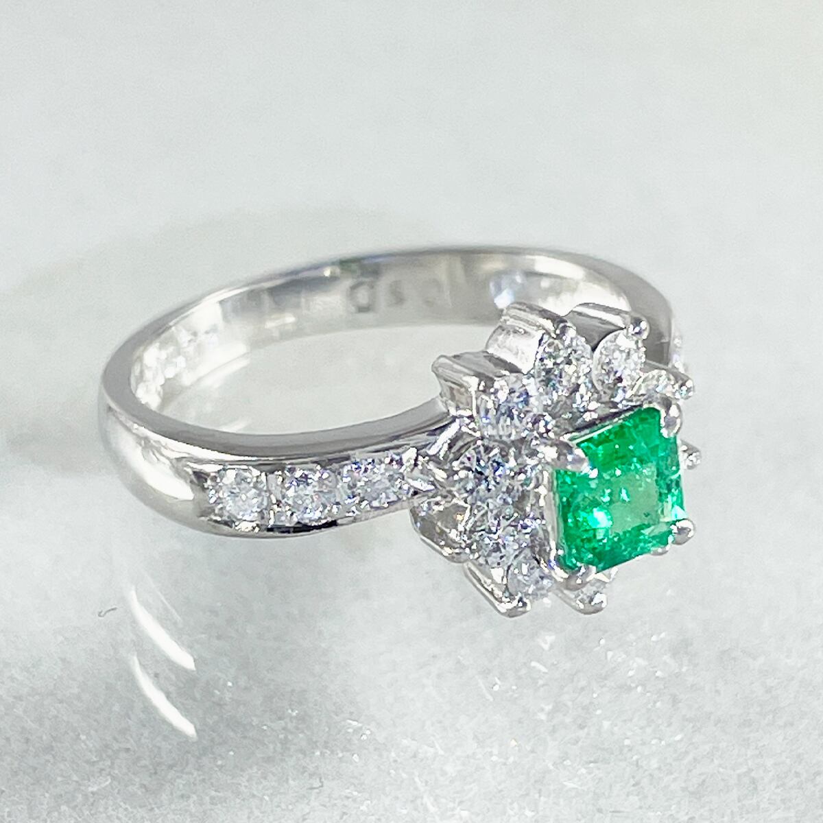Pt900 天然エメラルド 0.32ct 天然ダイヤモンド 0.40ct リング