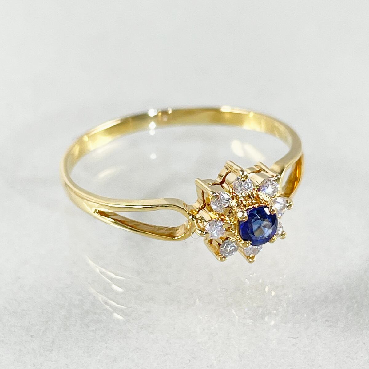 K18 天然サファイア 0.10ct 天然ダイヤモンド 0.10ct リング