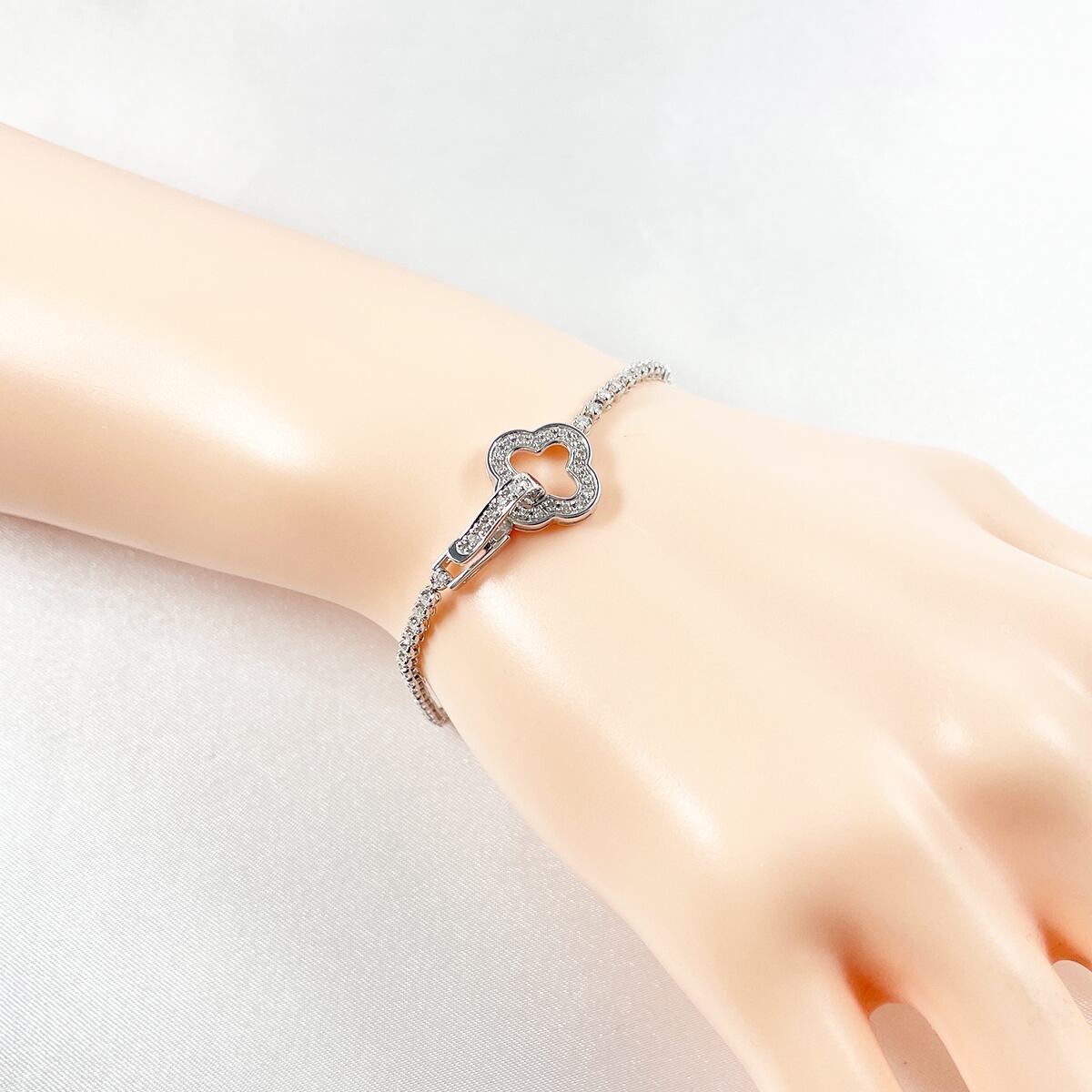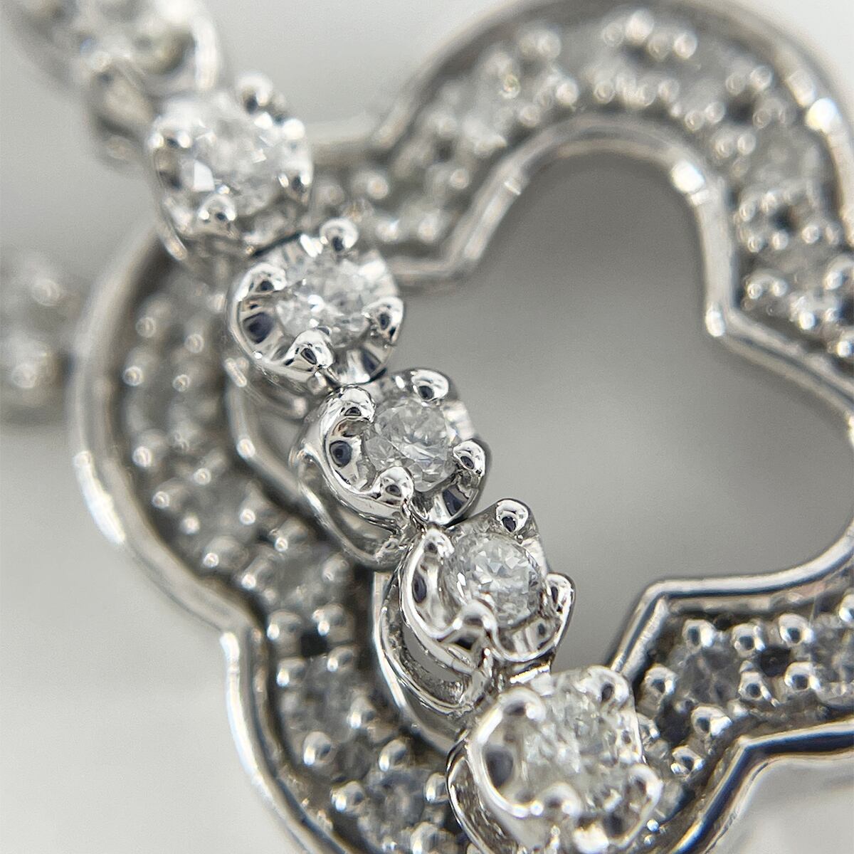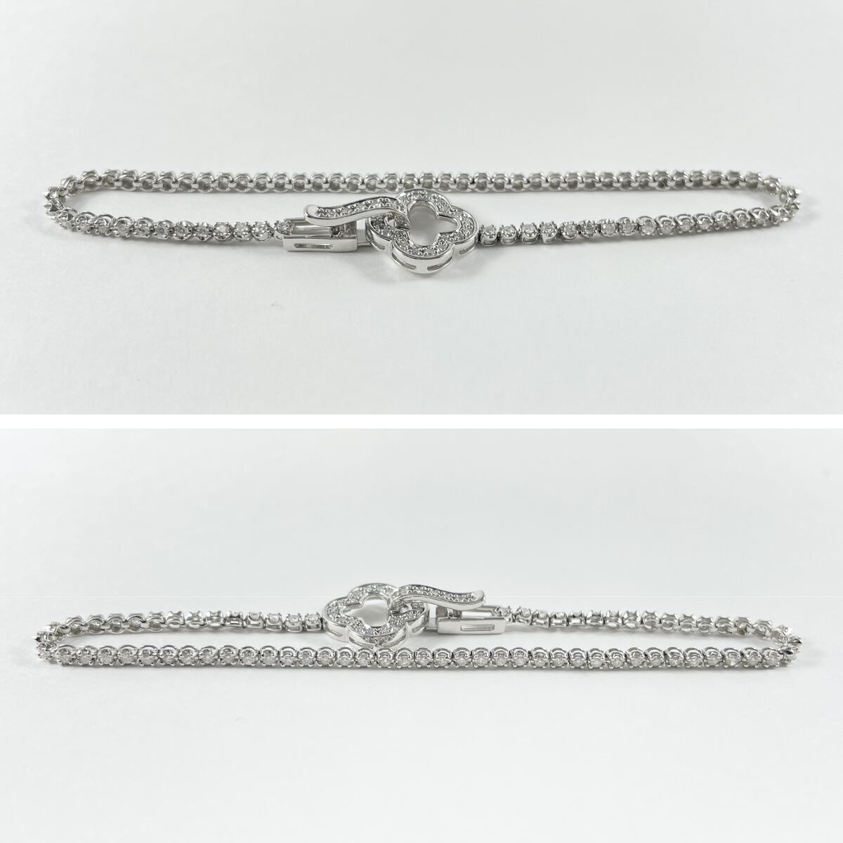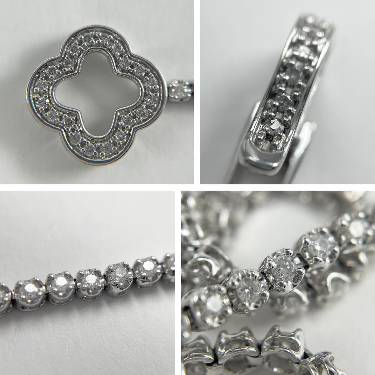 華奢なダイヤがぐるりと輝き、クローバーモチーフの留め具が上品なポイントに♡