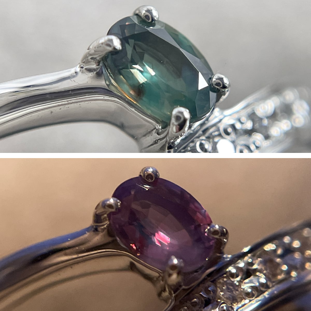 深みのある色合いが魅力のアレキサンドライトを主役にしたリング。