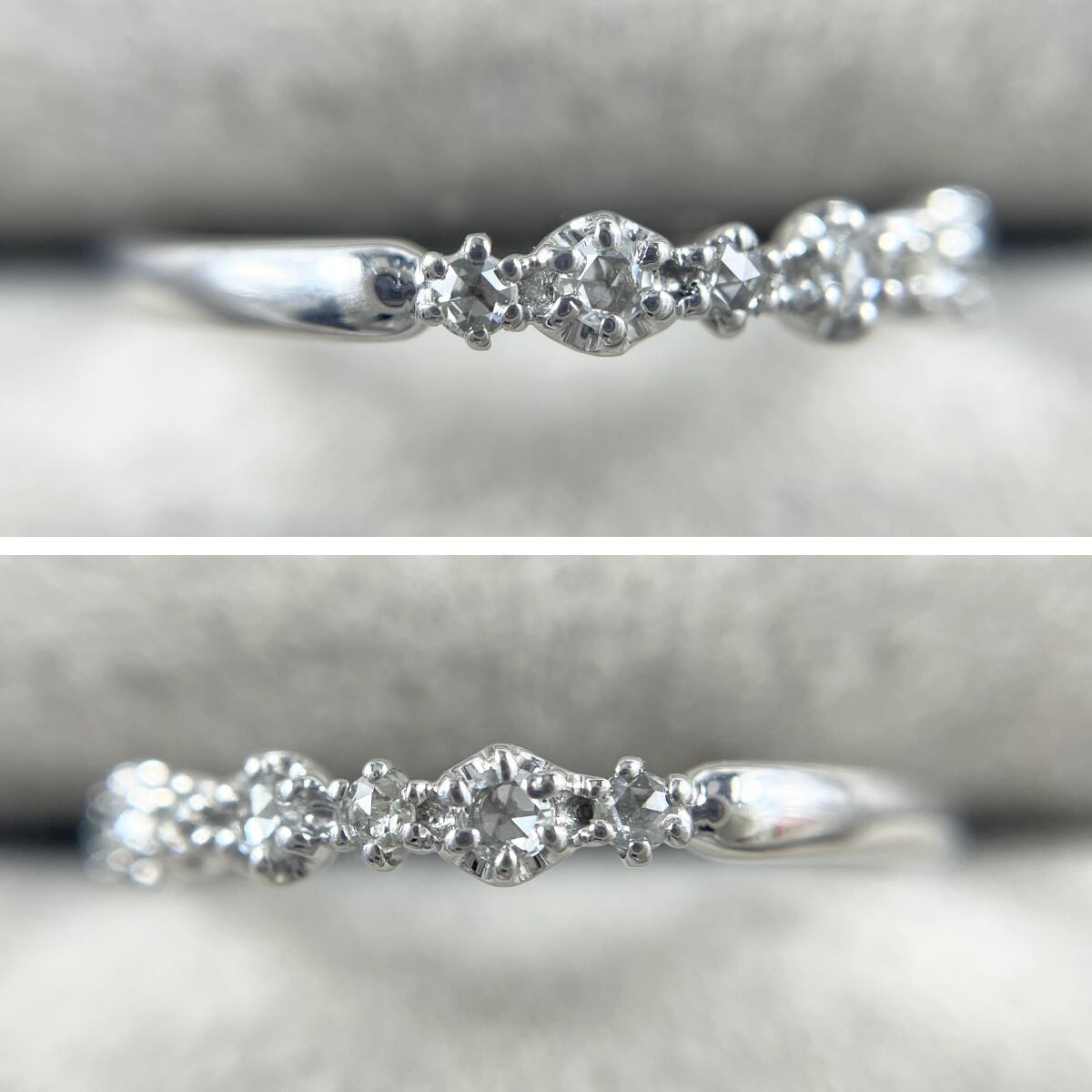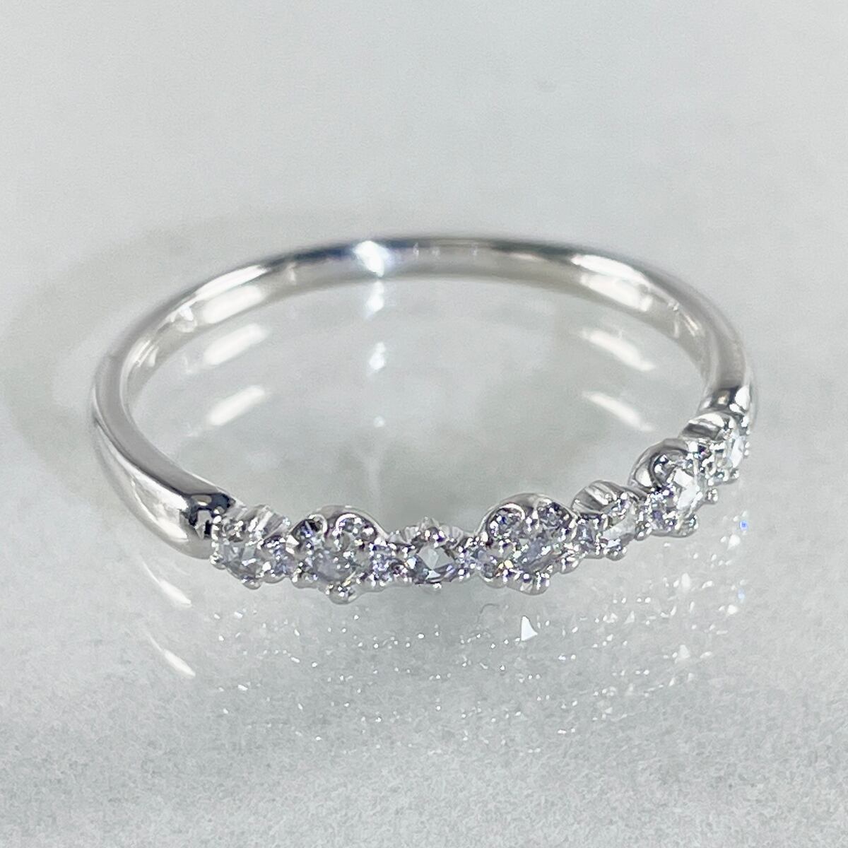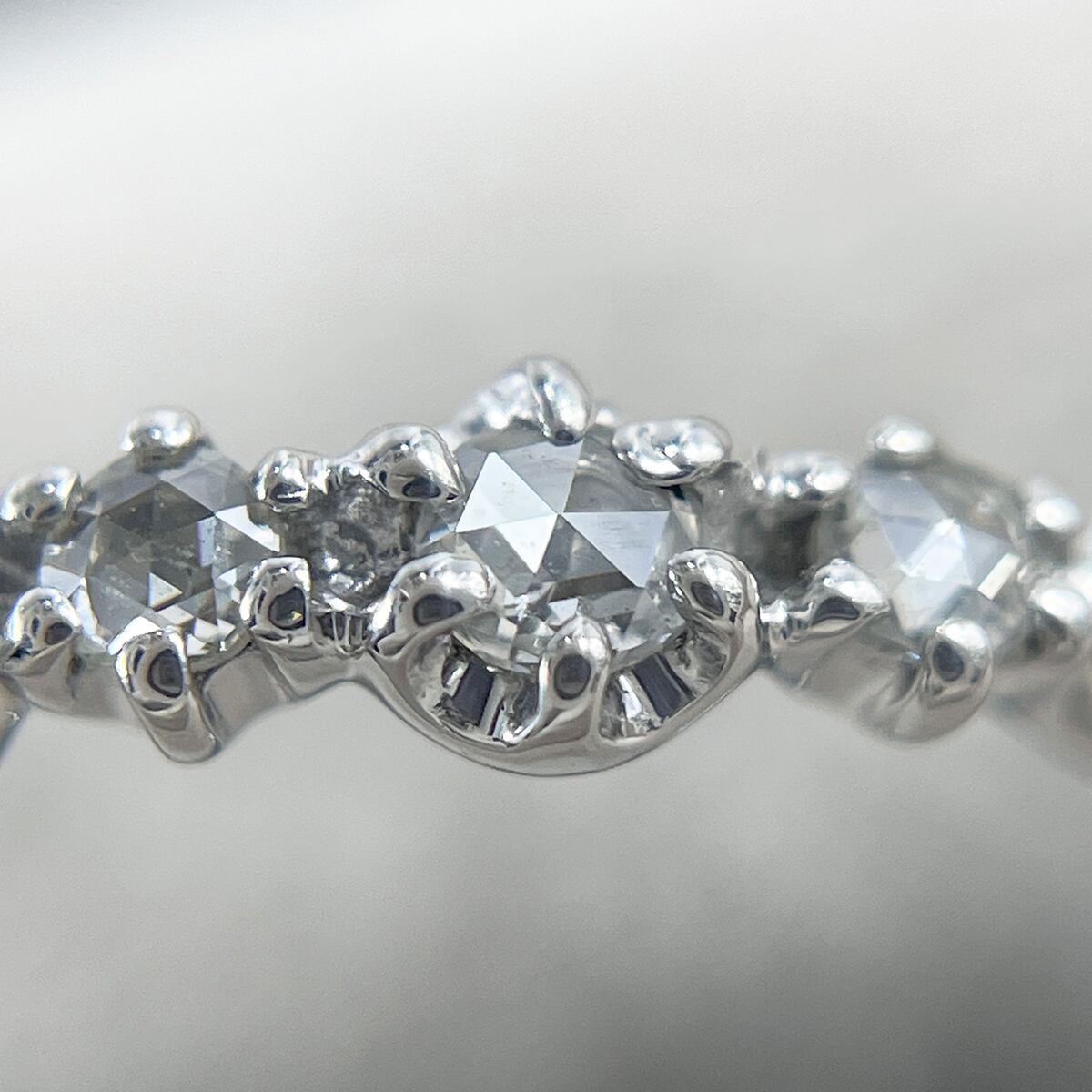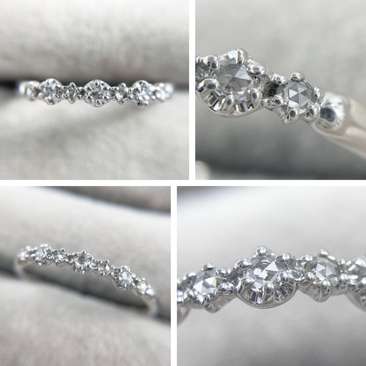 やさしいきらめきが魅力のローズカットダイヤモンドを並べた、ハーフエタニティリング。