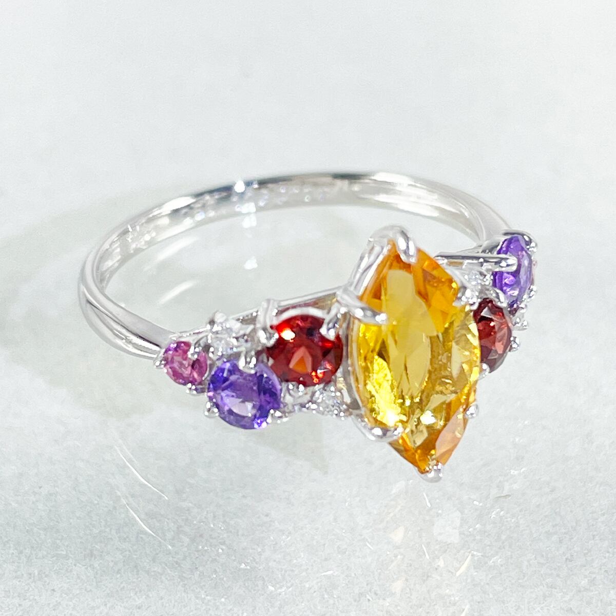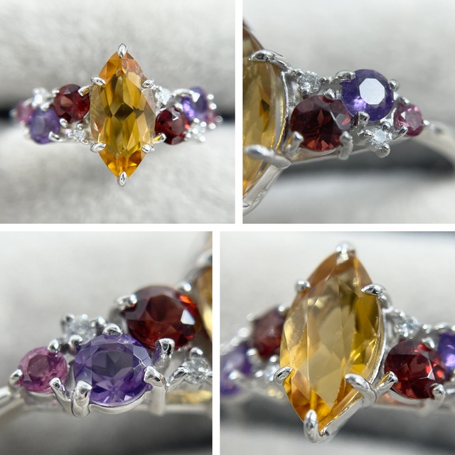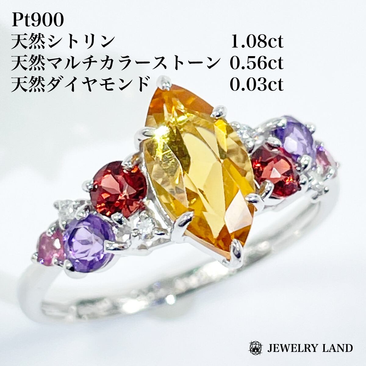 Pt900 シトリン1.08ct マルチカラーストーン0.56 ダイヤ0.03