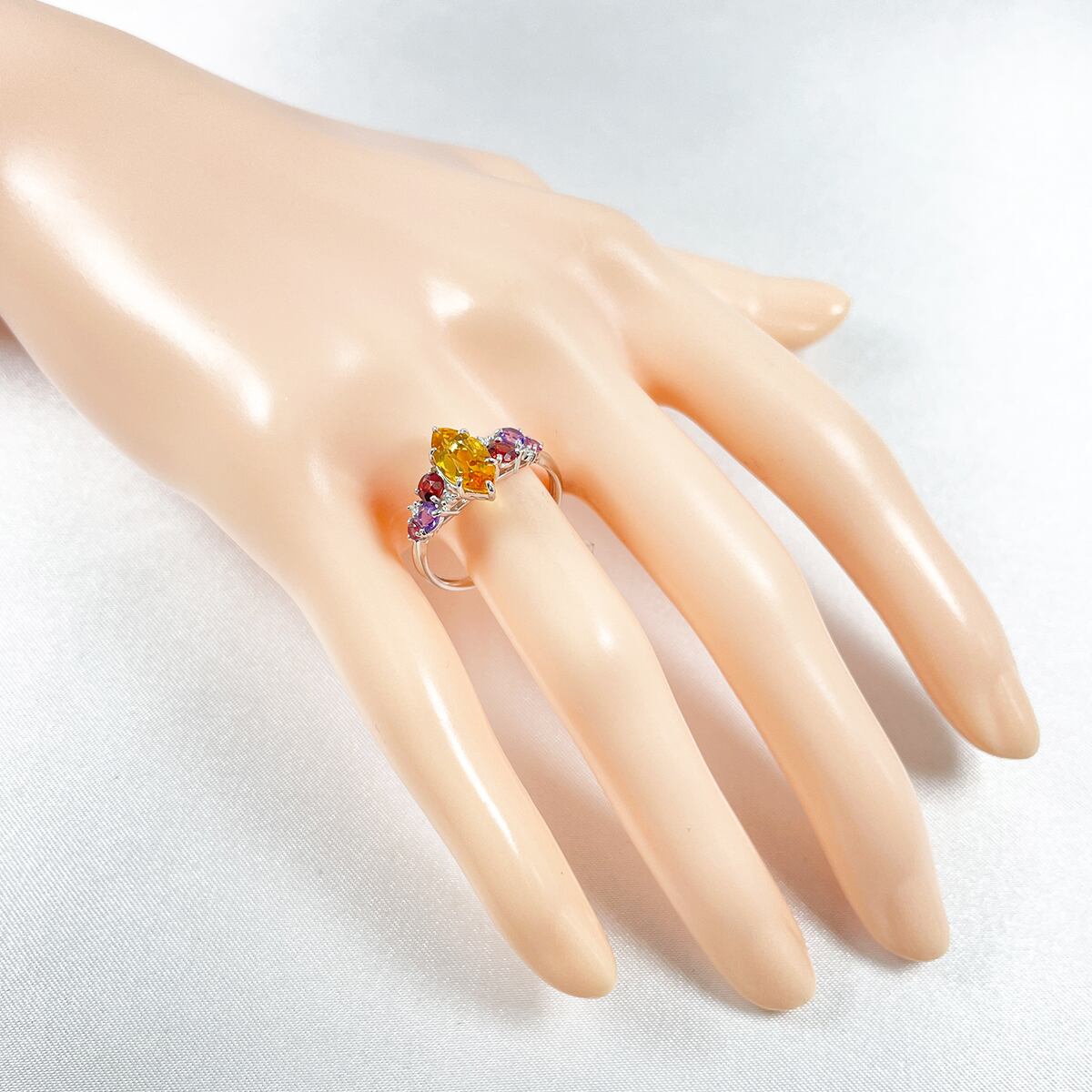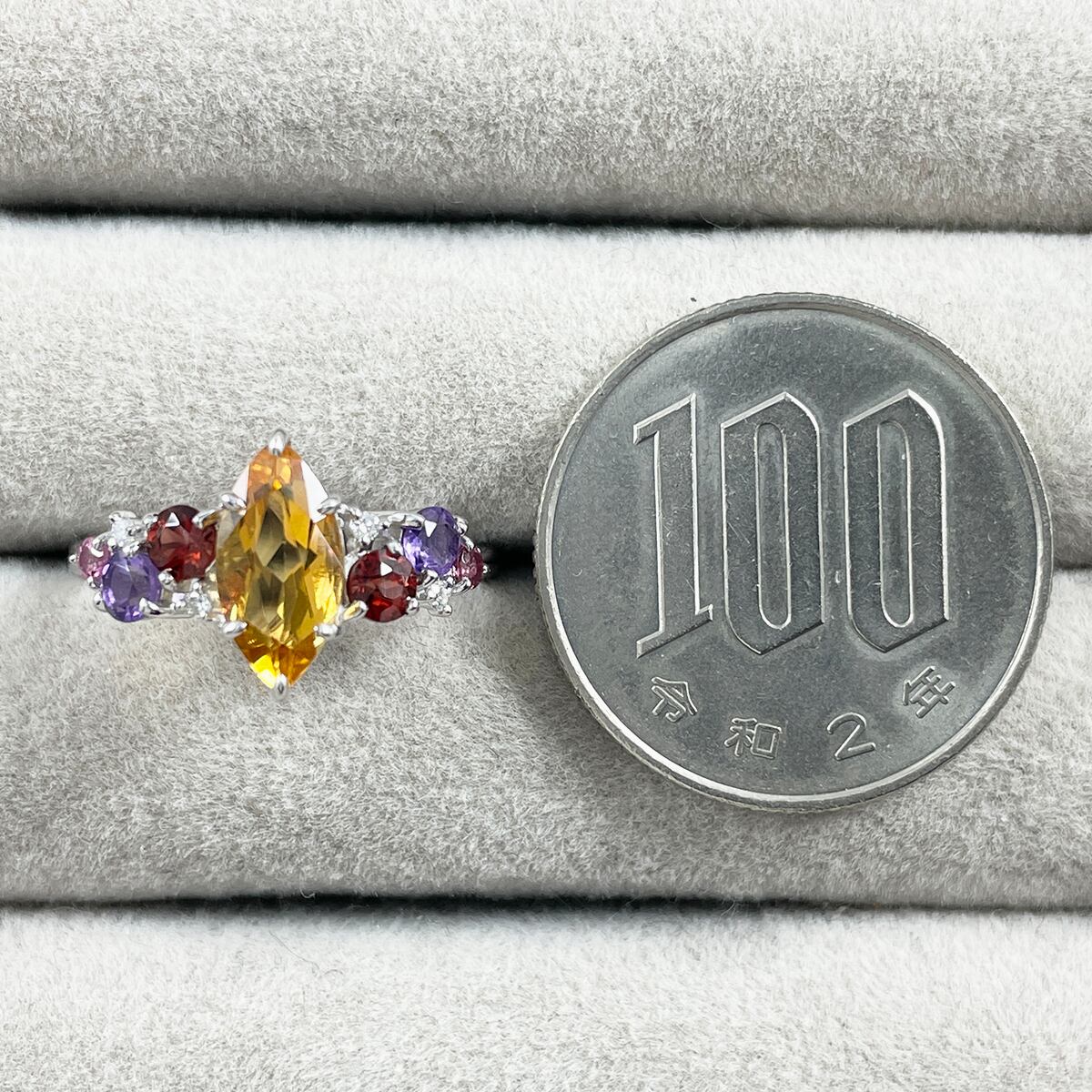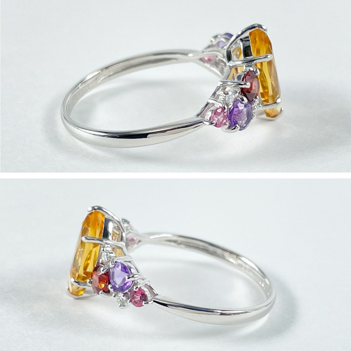 Pt900 シトリン1.08ct マルチカラーストーン0.56 ダイヤ0.03