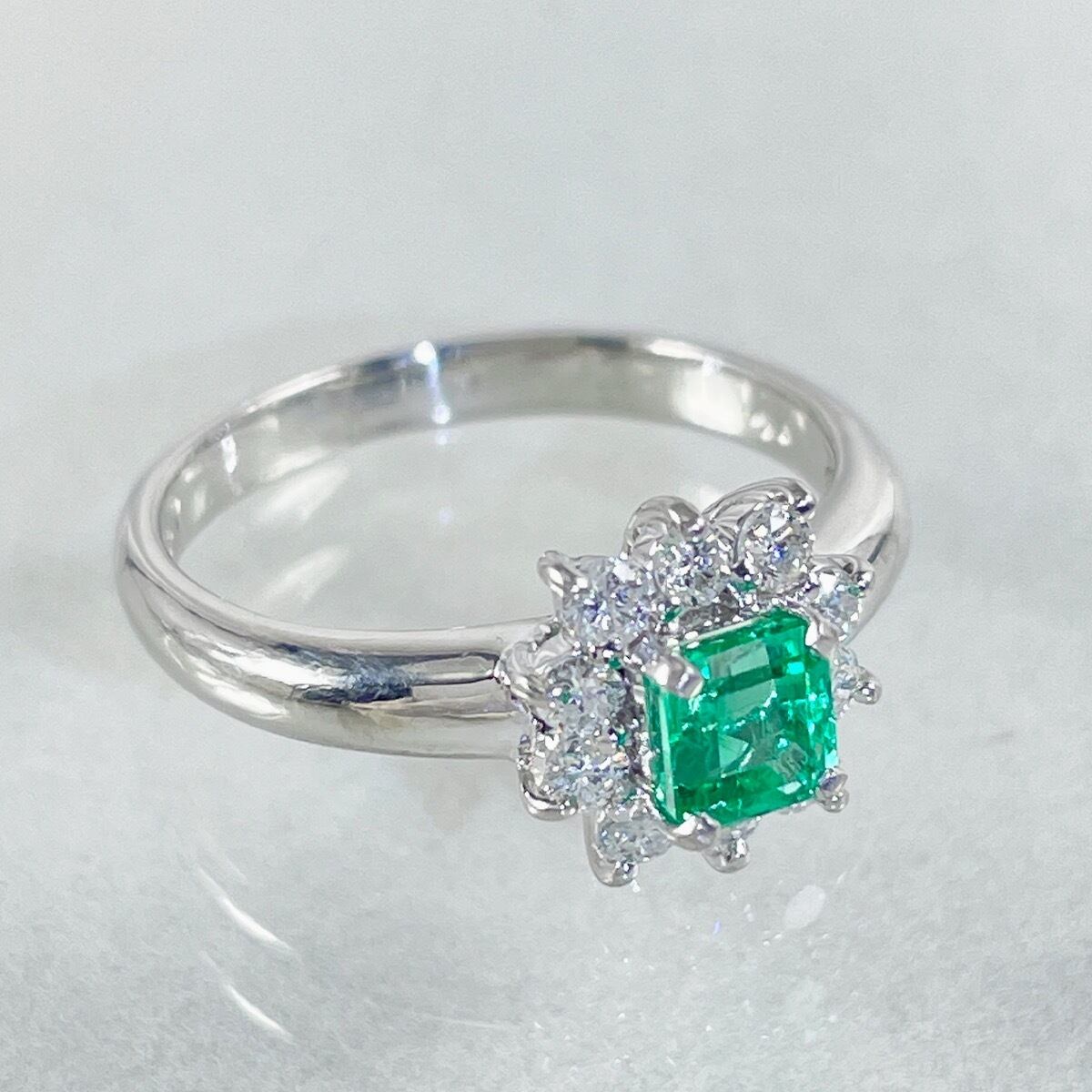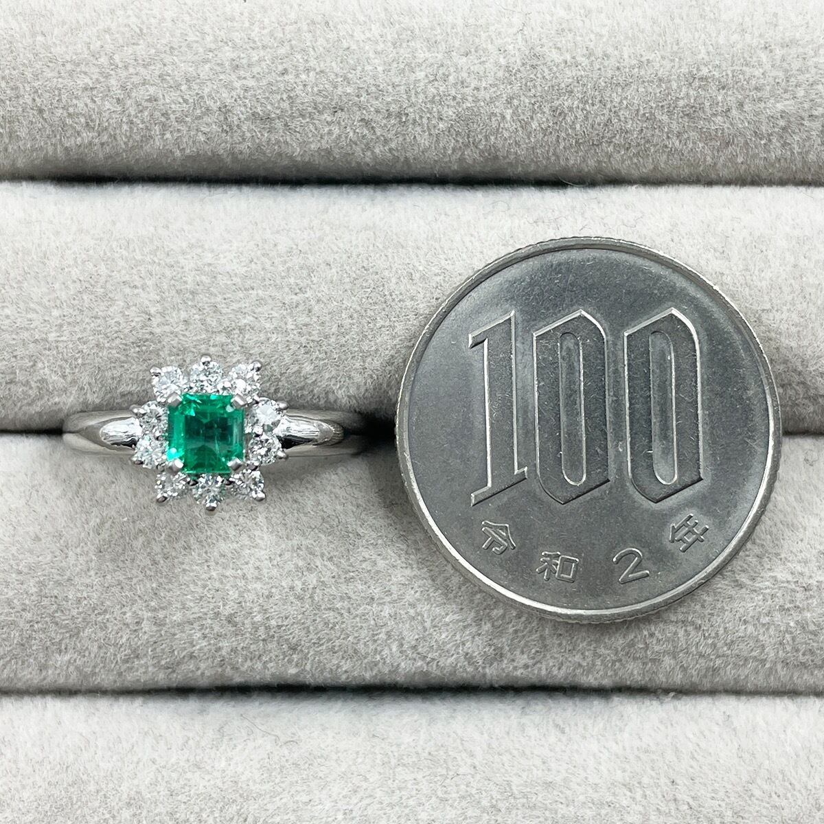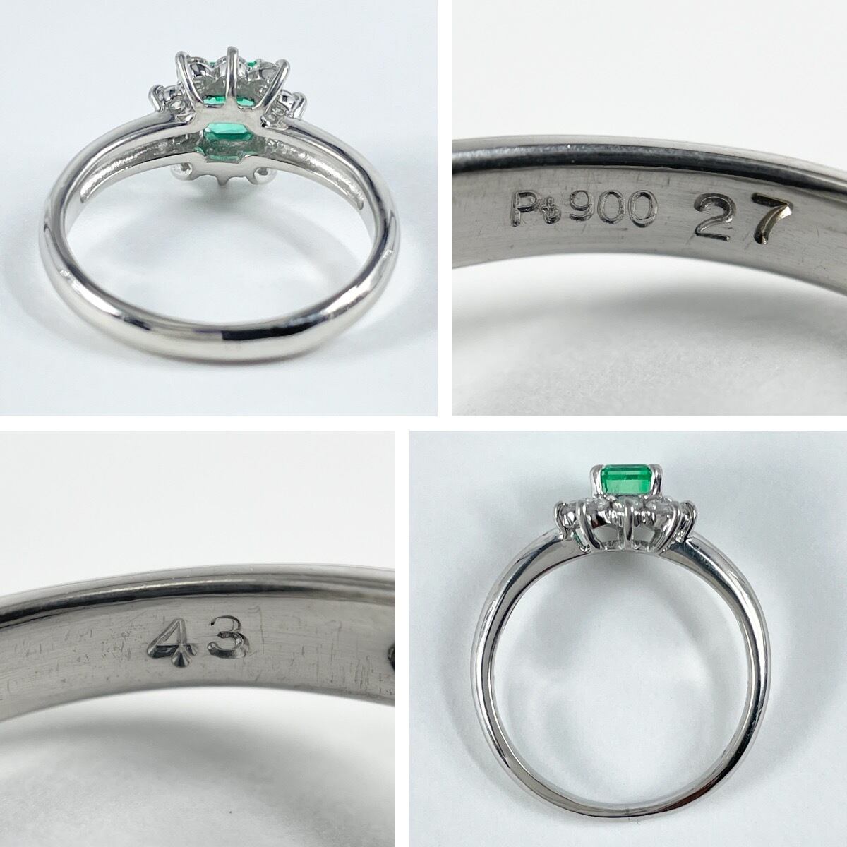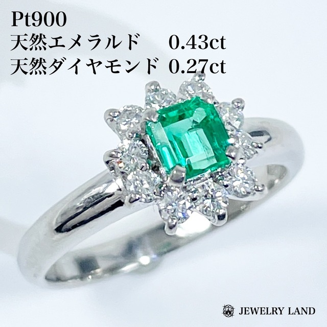 Pt900 天然エメラルド 0.43ct 天然ダイヤモンド 0.27ct リング