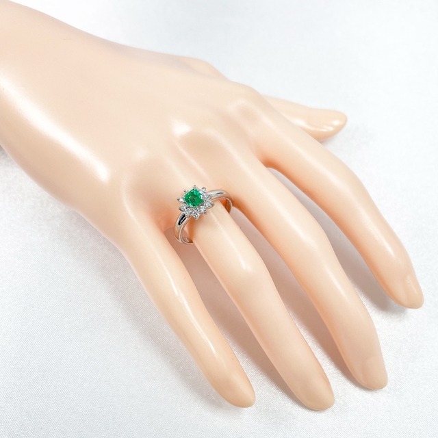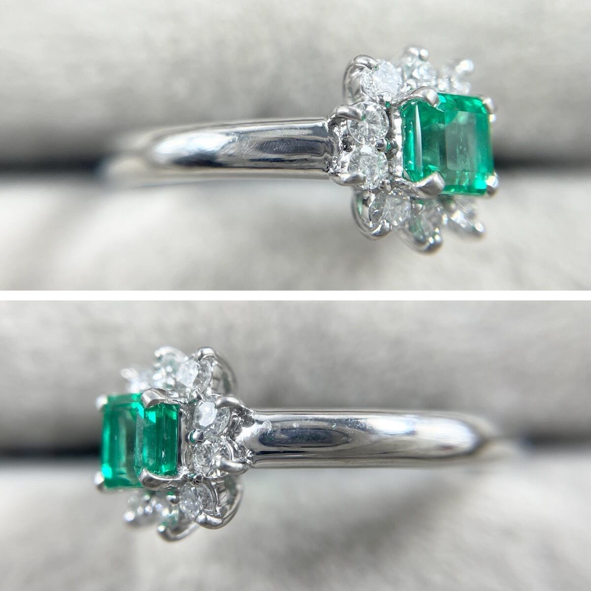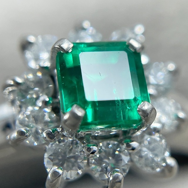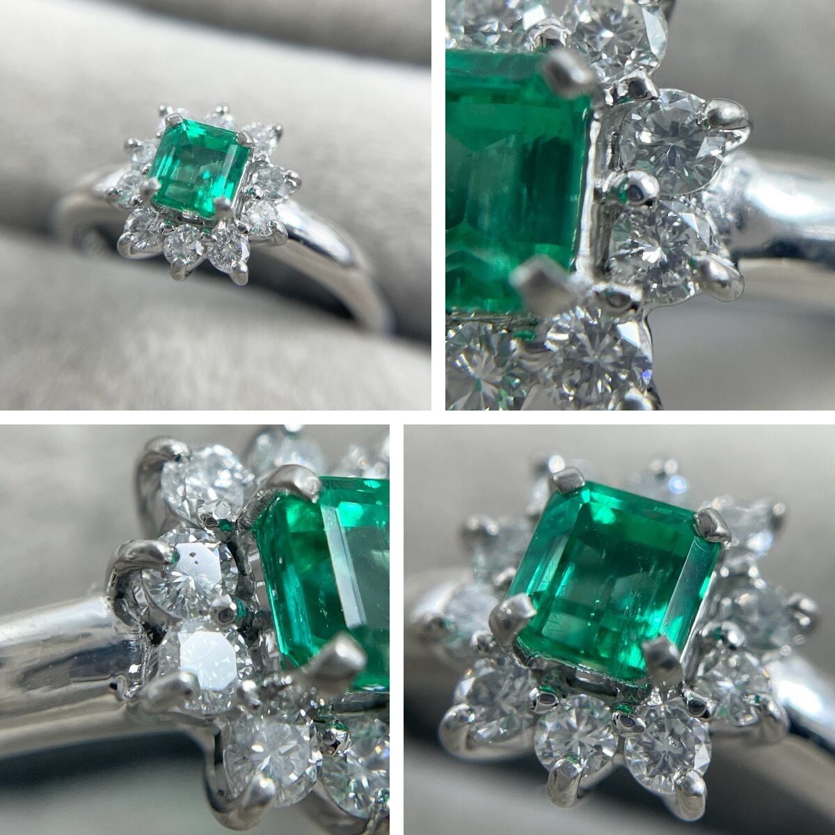 Pt900 天然エメラルド 0.43ct 天然ダイヤモンド 0.27ct リング