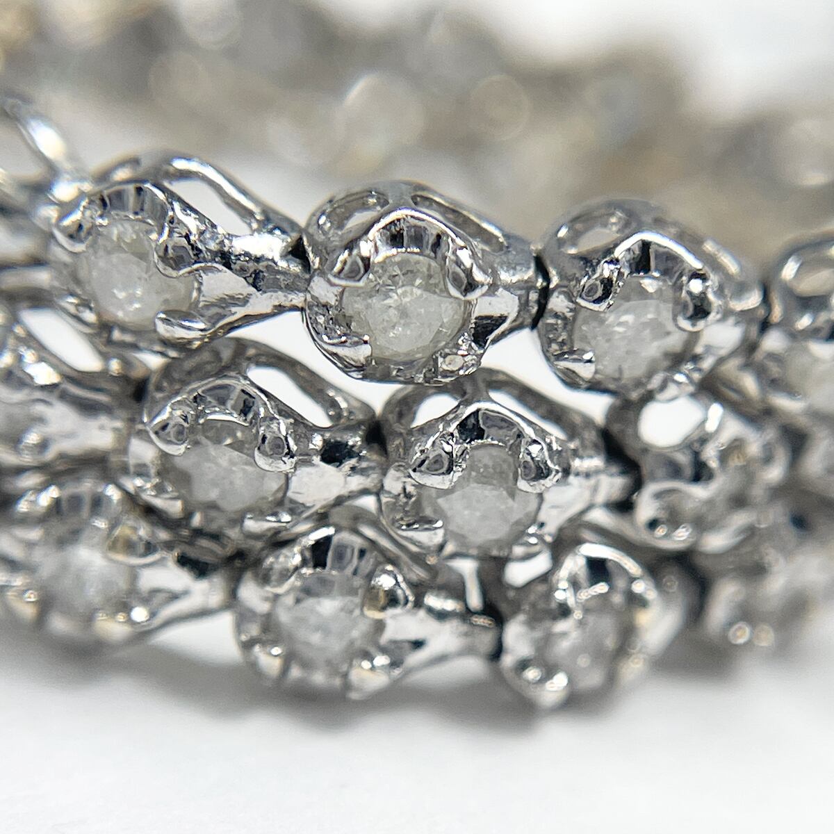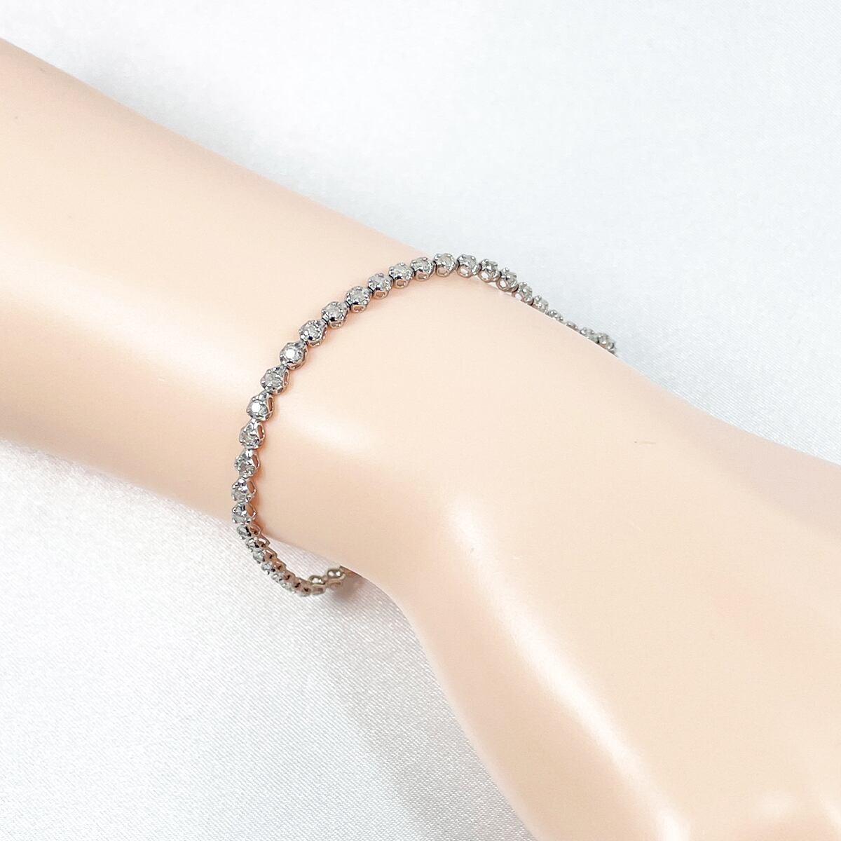 繊細に並んだダイヤモンドが手元で上品にきらめく、K18WGのテニスブレスレット♪