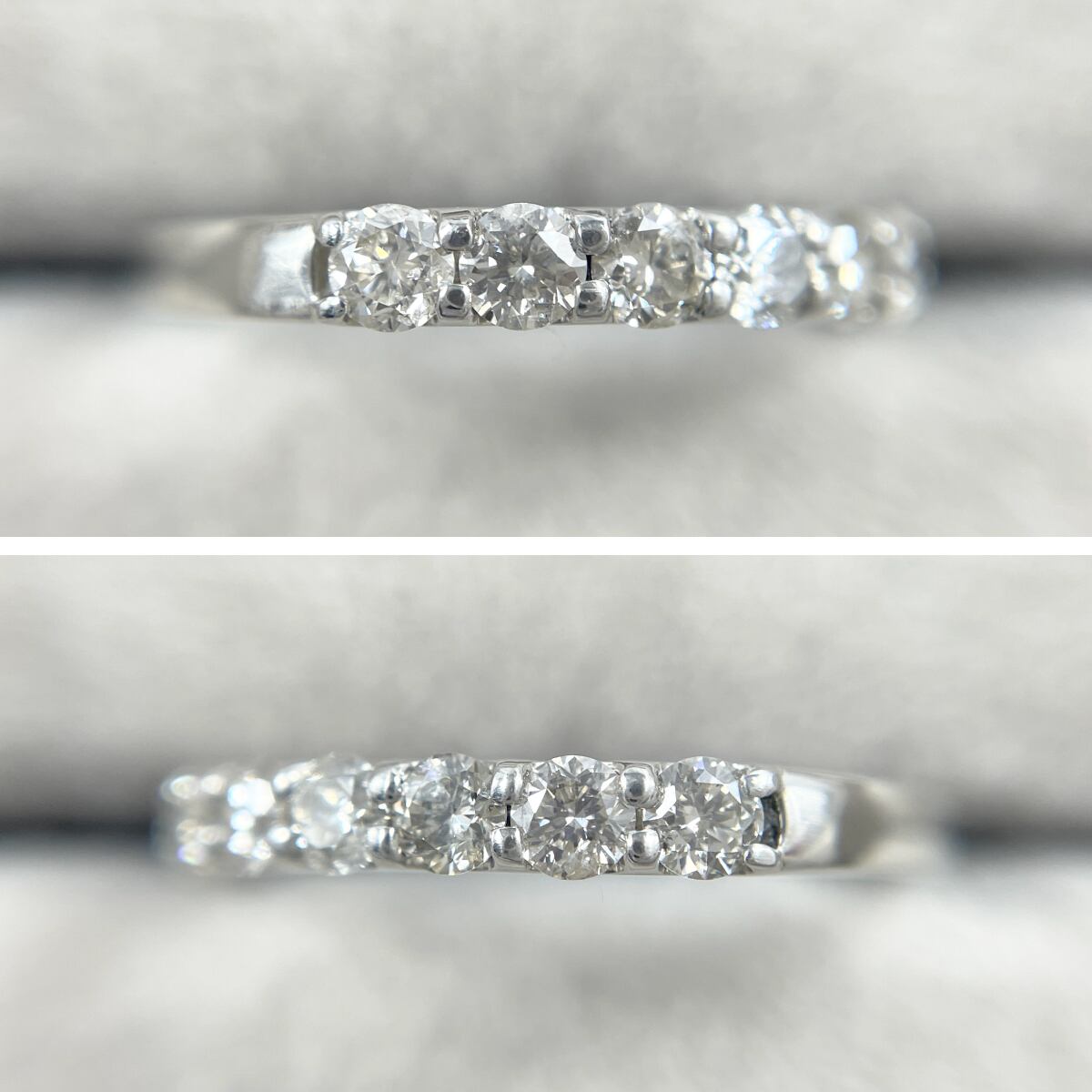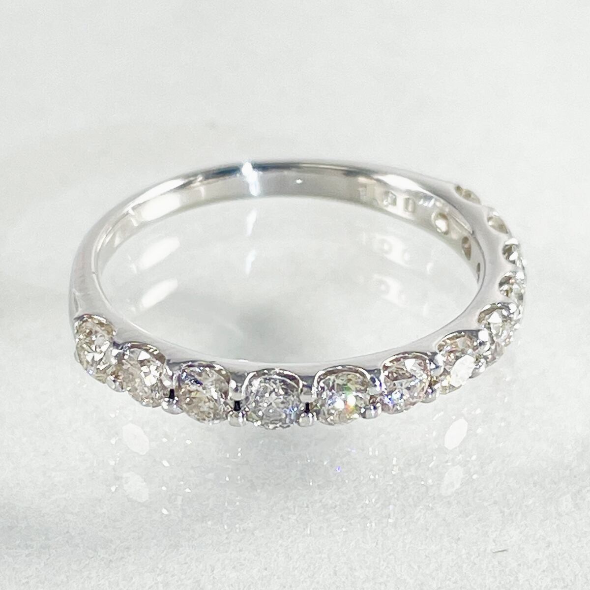 合計1.00ctのダイヤモンドがきらりと並ぶハーフエタニティリング。