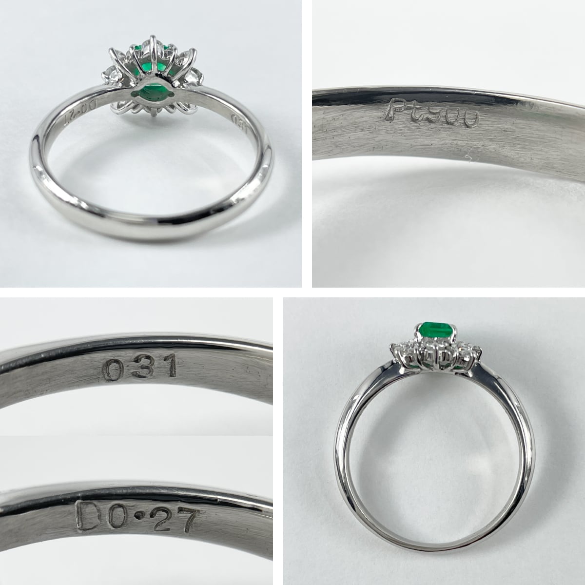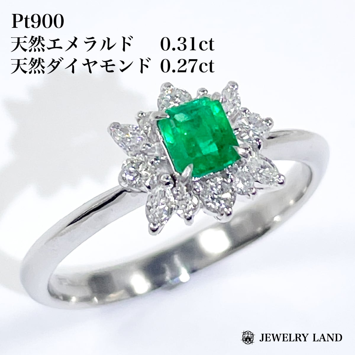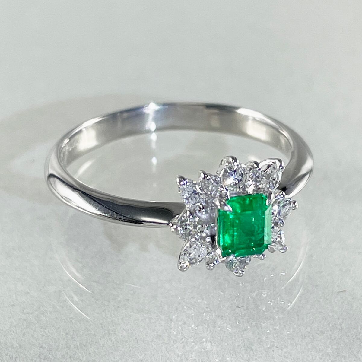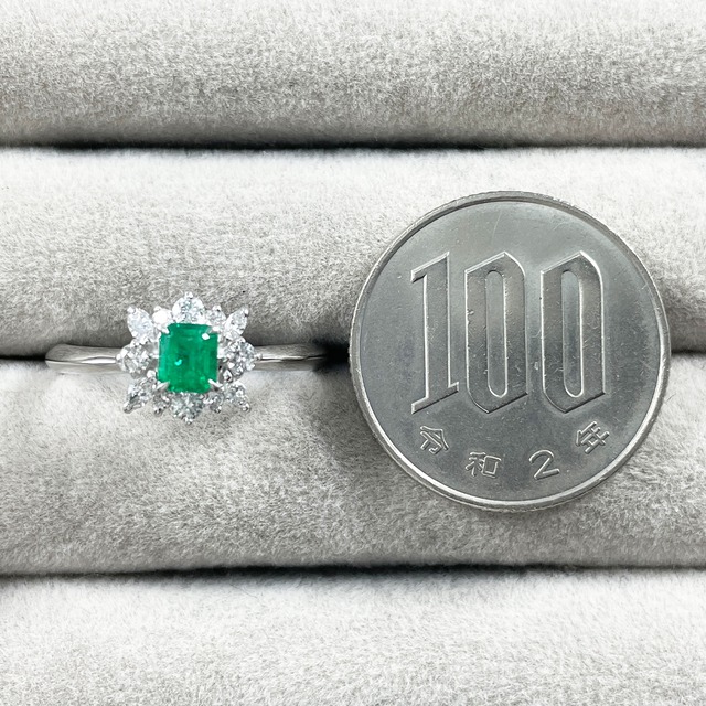 Pt900 天然エメラルド 0.31ct 天然ダイヤモンド 0.27ct リング
