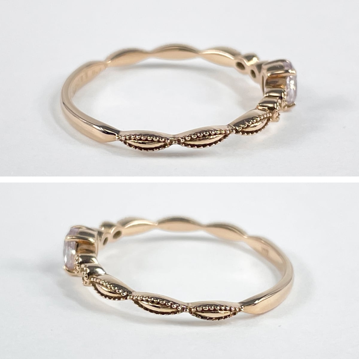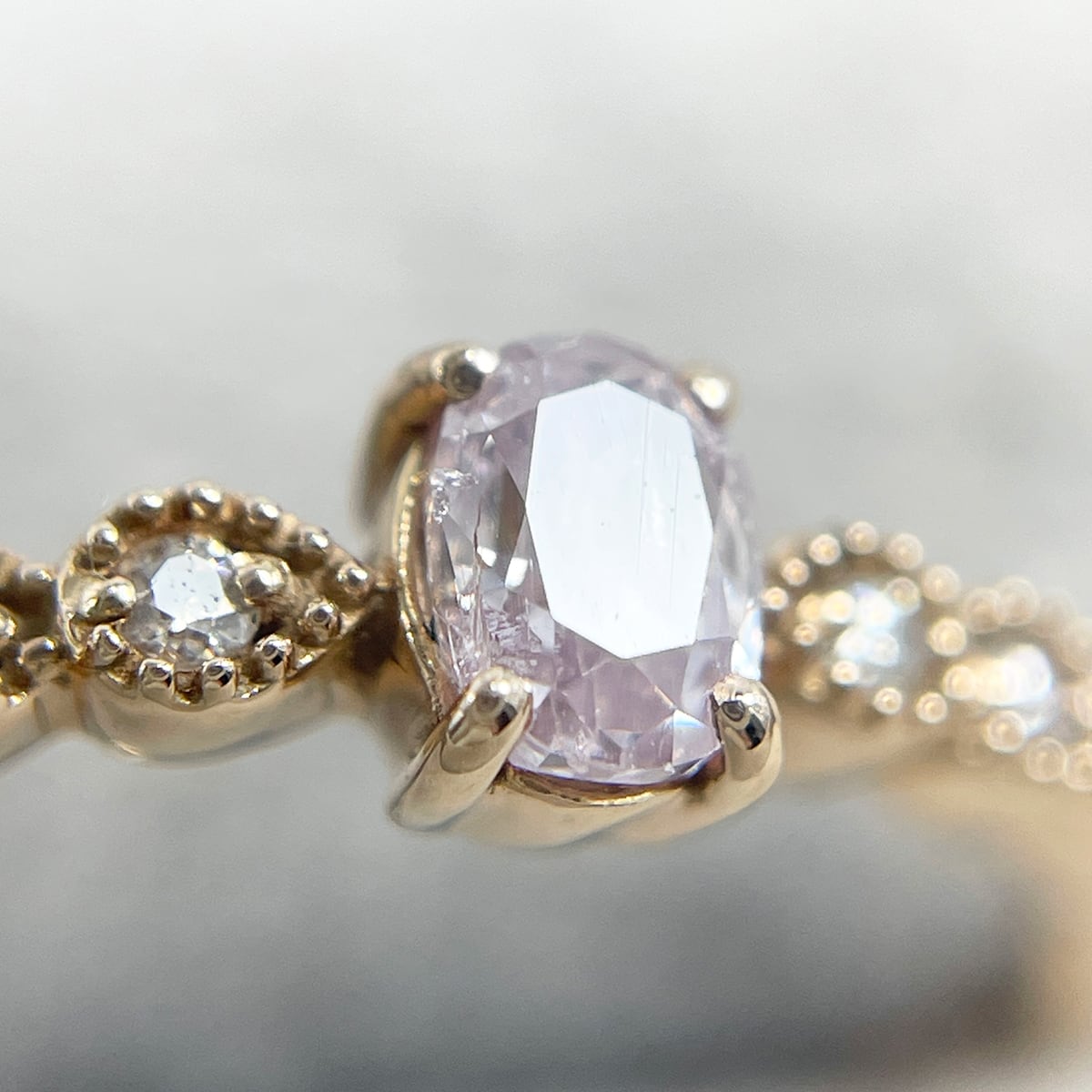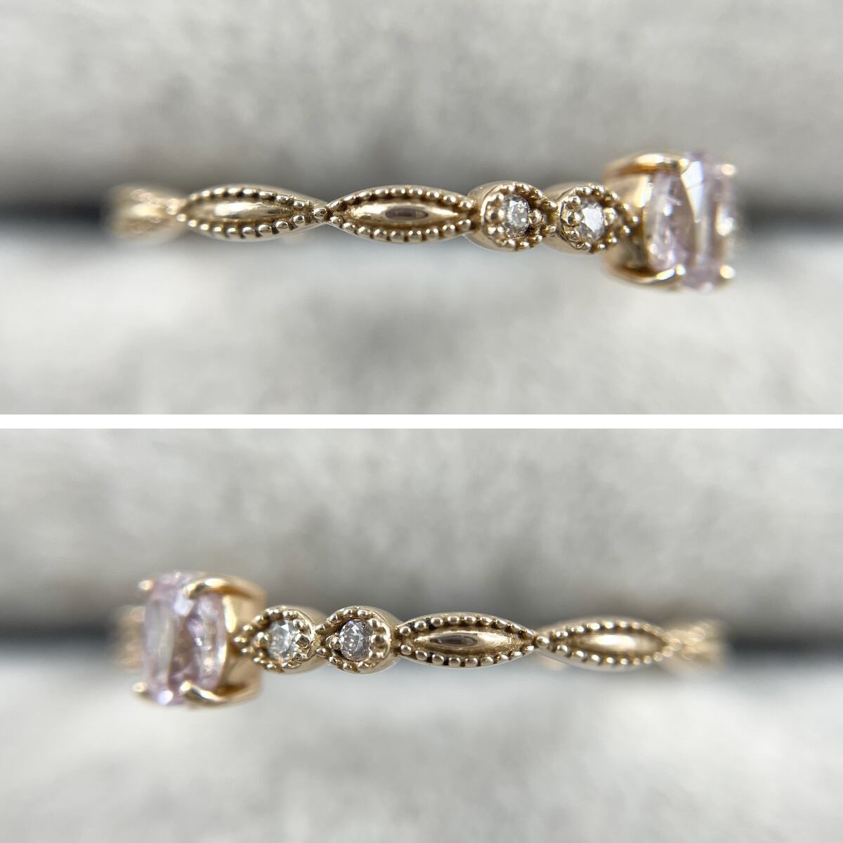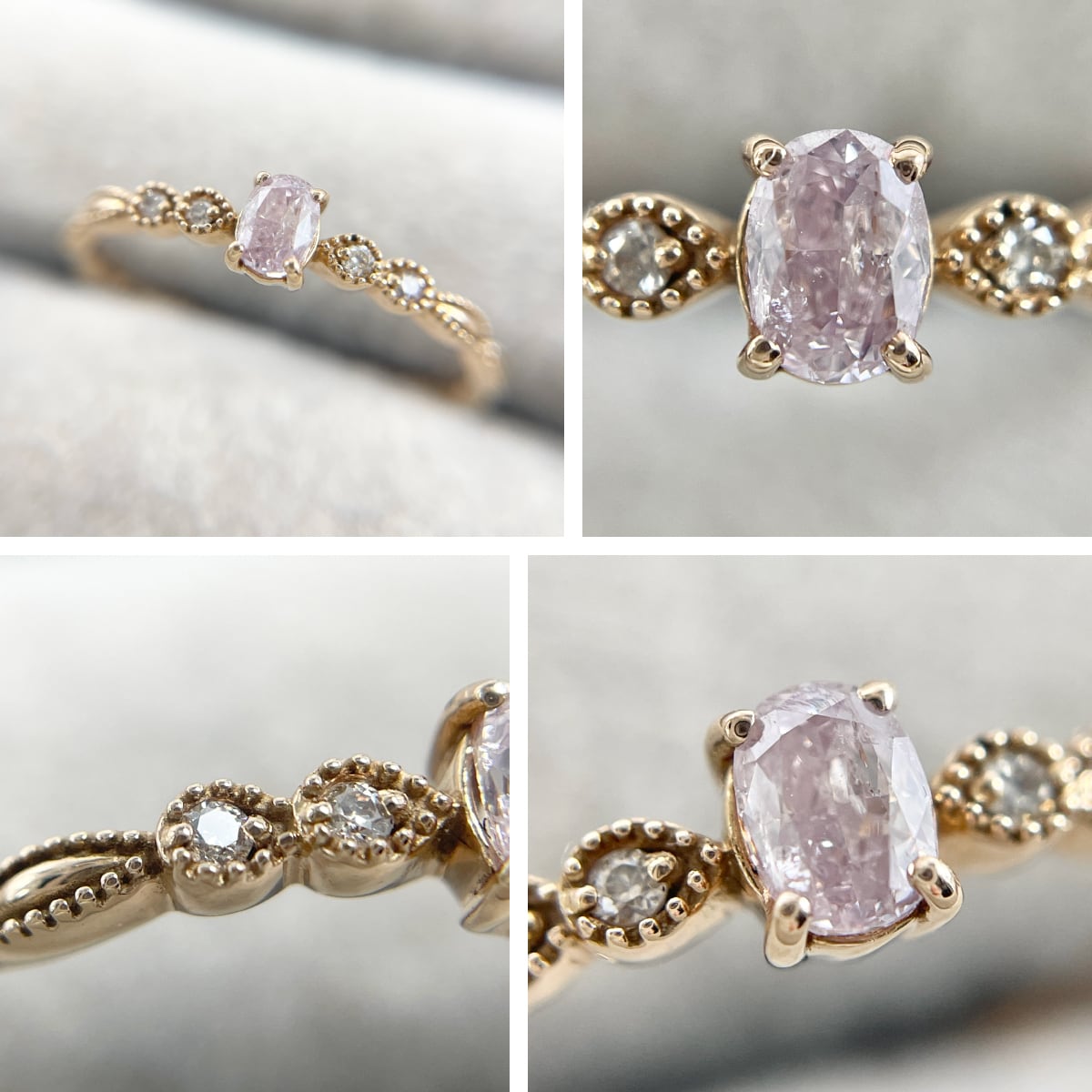 優しいピンクゴールドに、淡く色づくピンクダイヤがそっと輝く繊細なデザイン✨