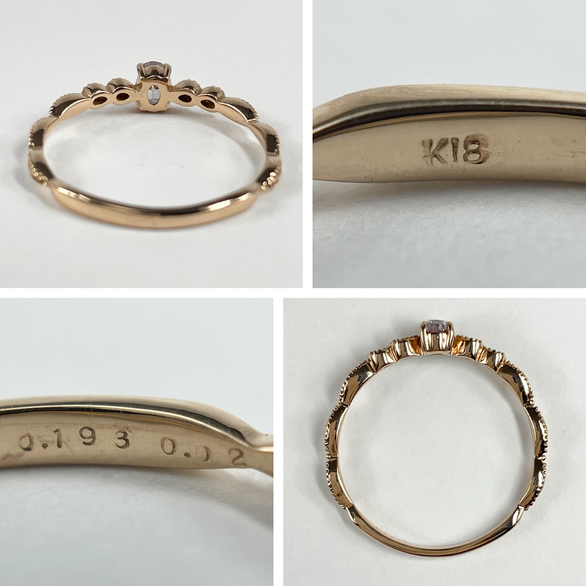 K18PG 天然ダイヤモンド 0.193ct 0.02ct リング