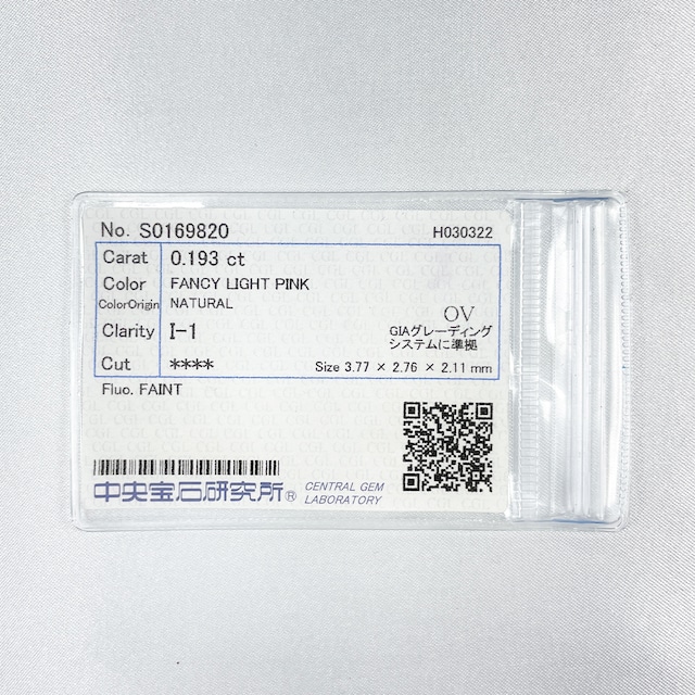 ・天然ピンクダイヤモンド(I-1、FANCY LIGHT PINK)