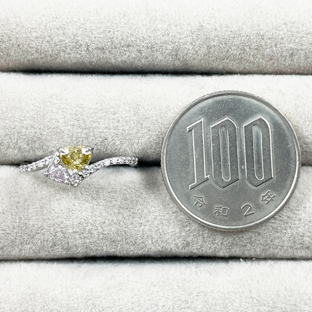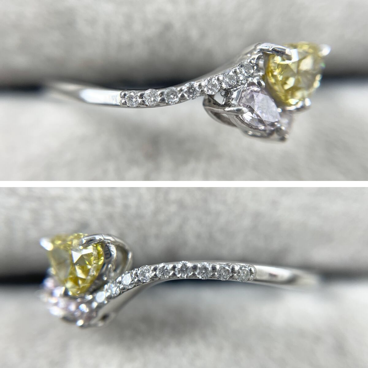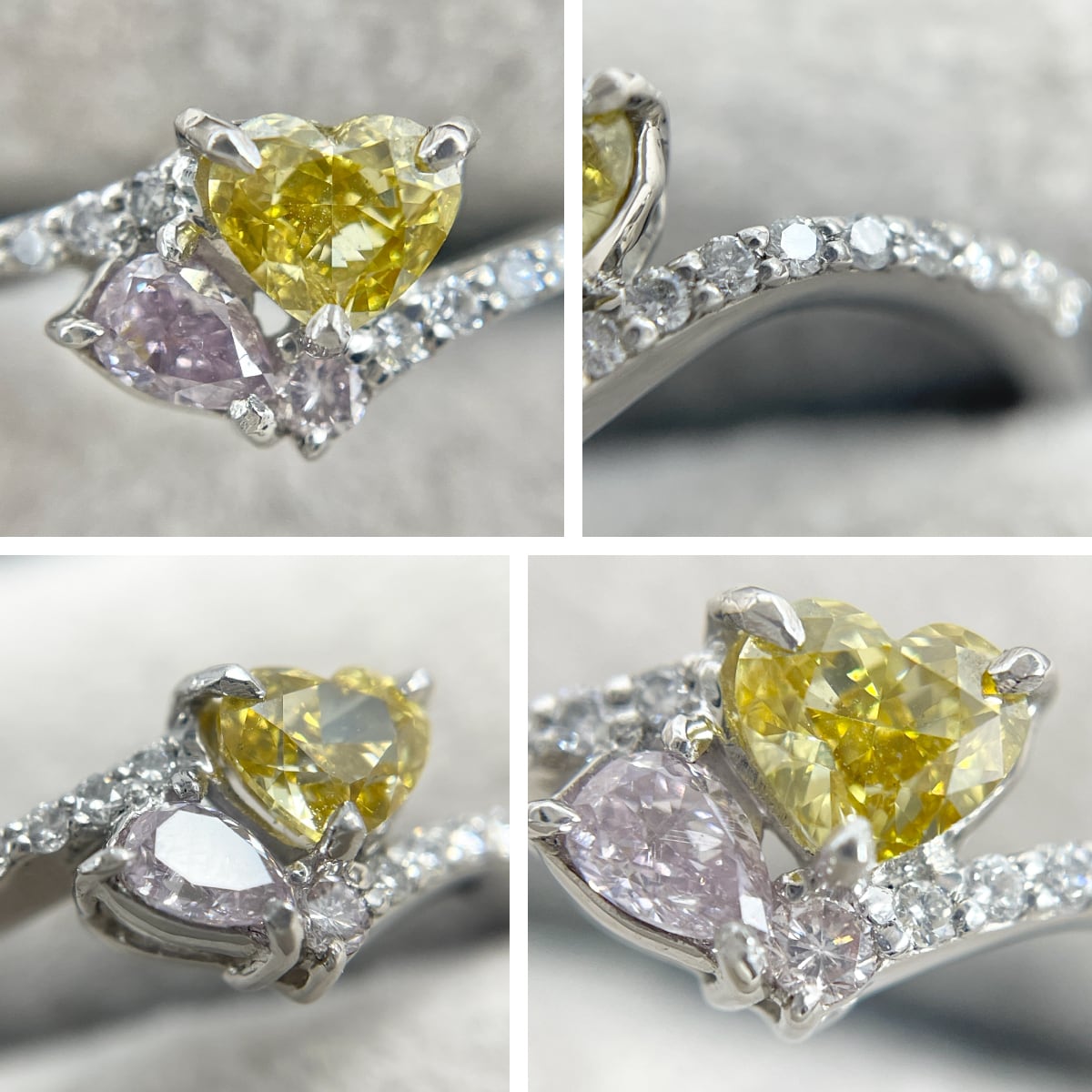 希少なカラーダイヤが寄り添う、愛らしさ満点のデザインです♡
