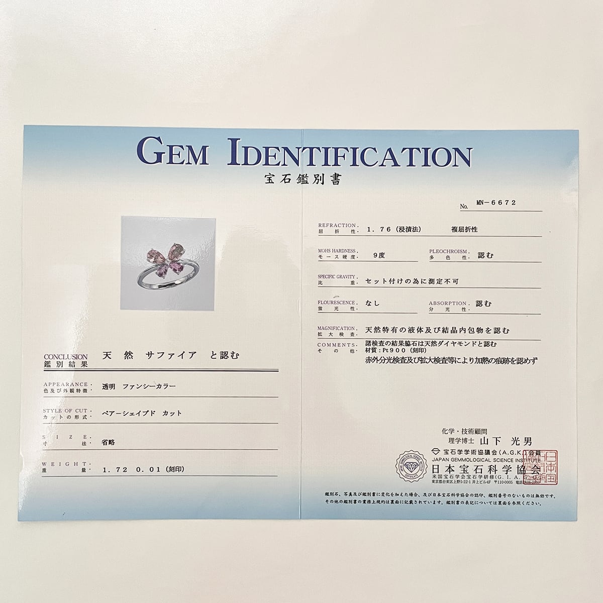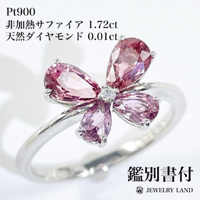 Pt900 非加熱サファイア 1.72ct ダイヤモンド 0.01ct リング