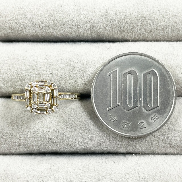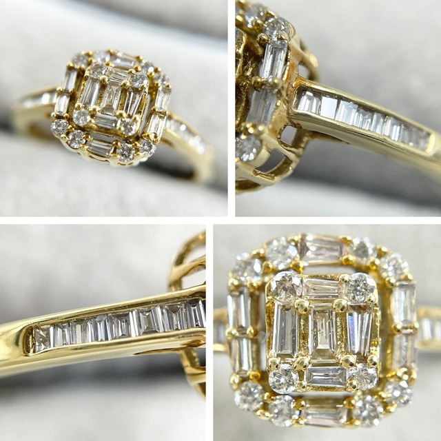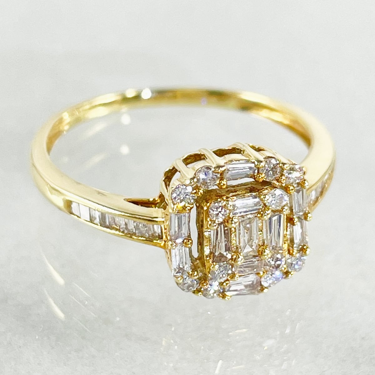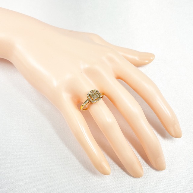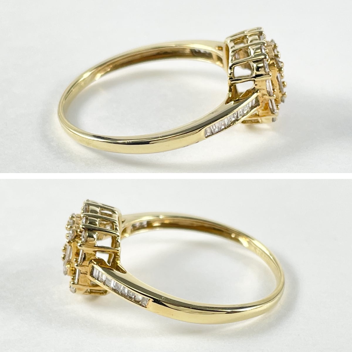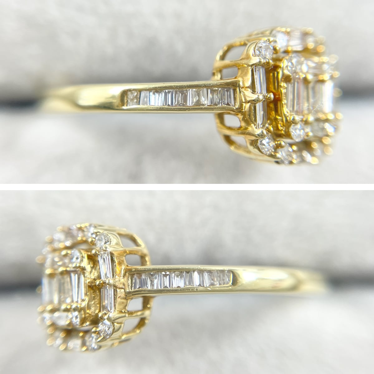 温かみのあるイエローゴールドに、贅沢なダイヤモンドが眩しく輝くリング。