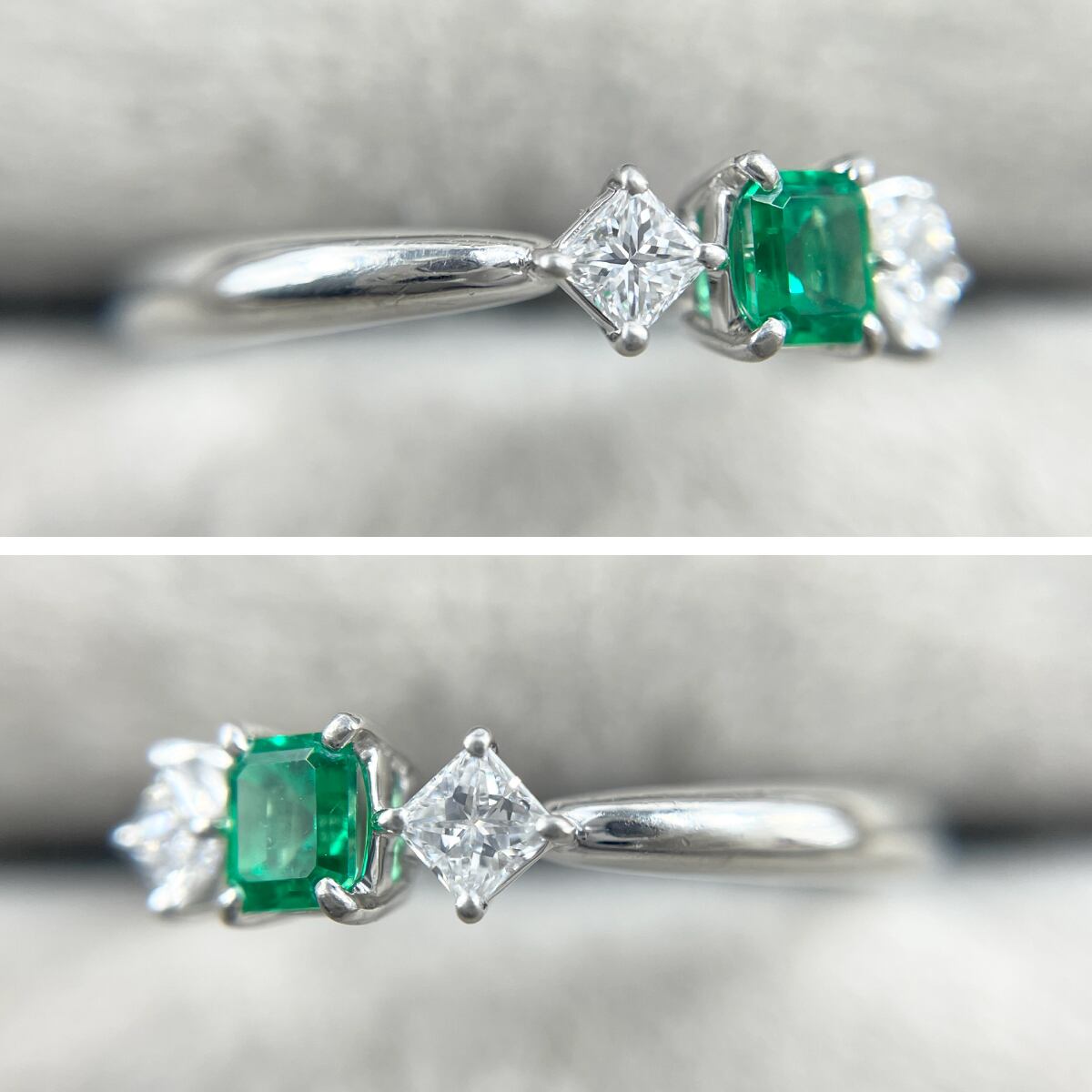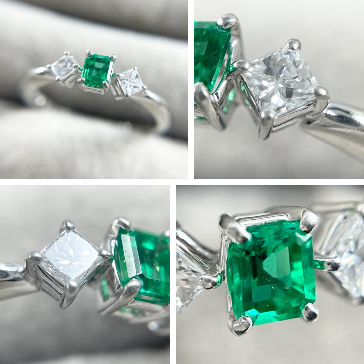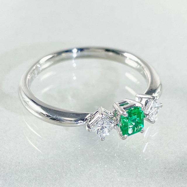 鮮やかで気品あふれるエメラルドに、プリンセスカットダイヤが華やかさをプラス♪