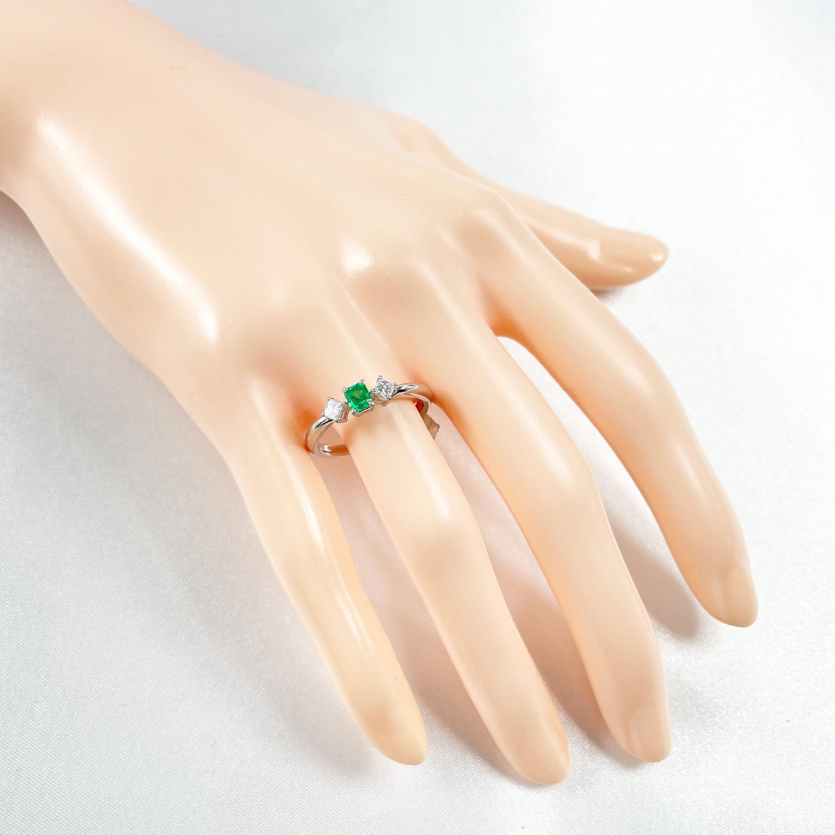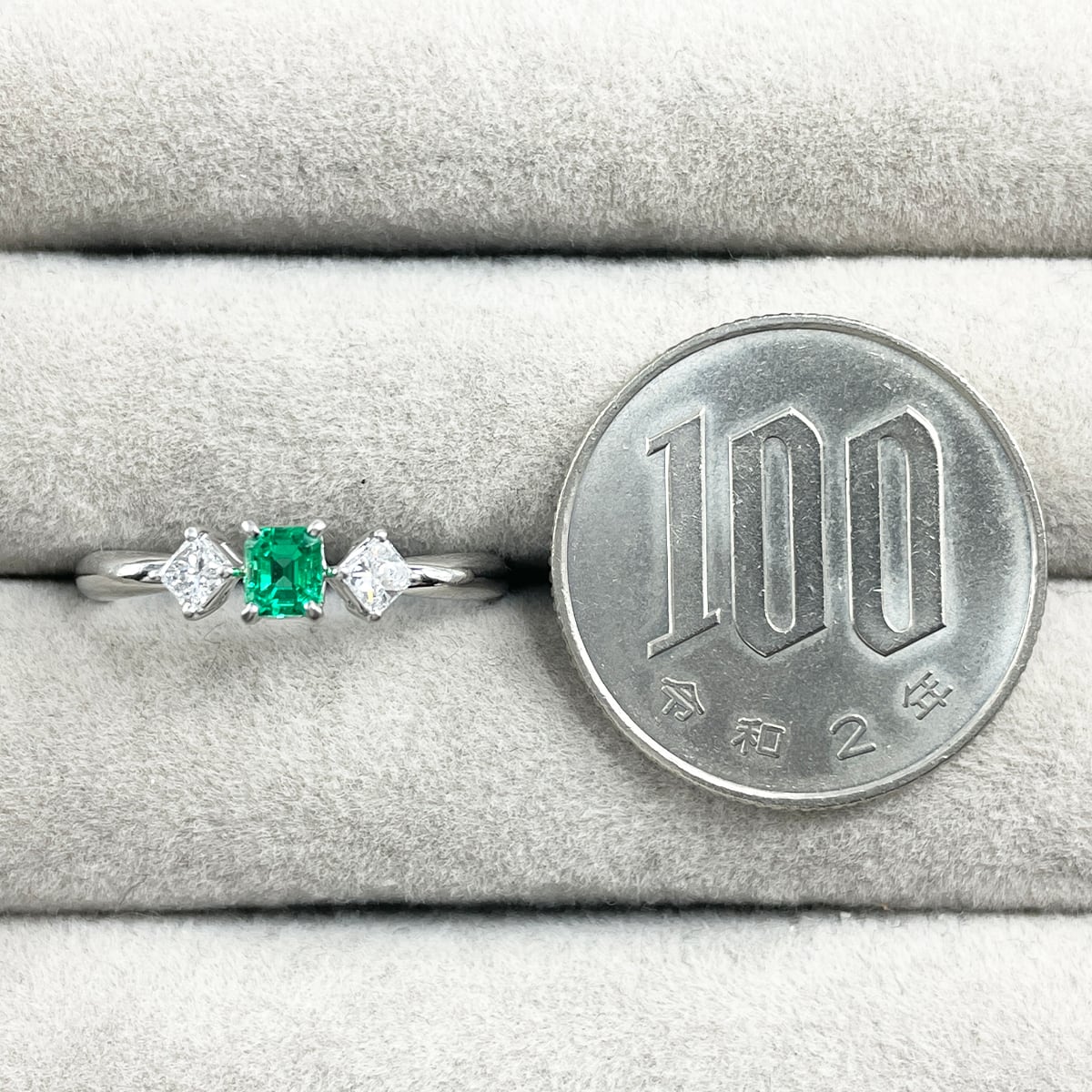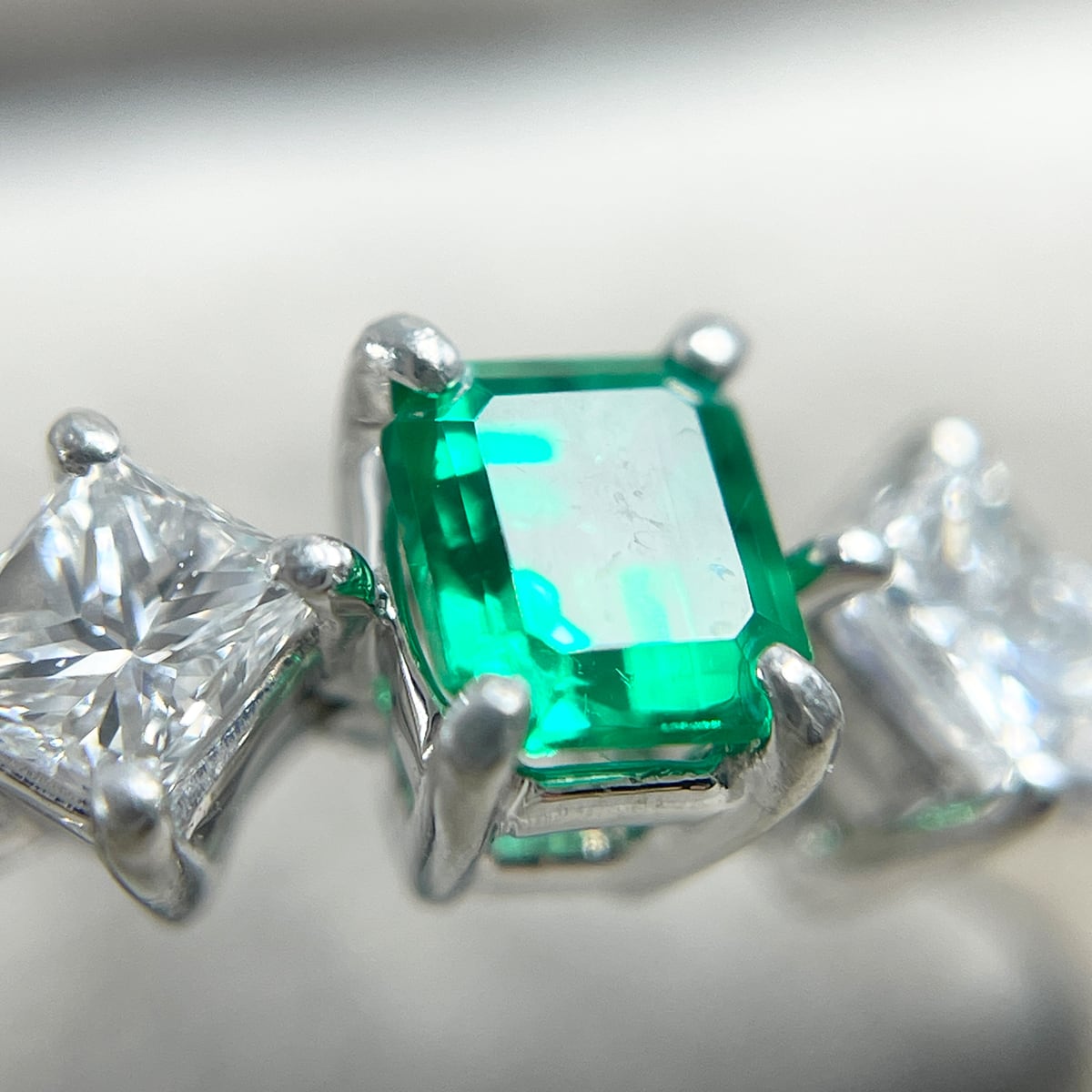 鮮やかで気品あふれるエメラルドに、プリンセスカットダイヤが華やかさをプラス♪