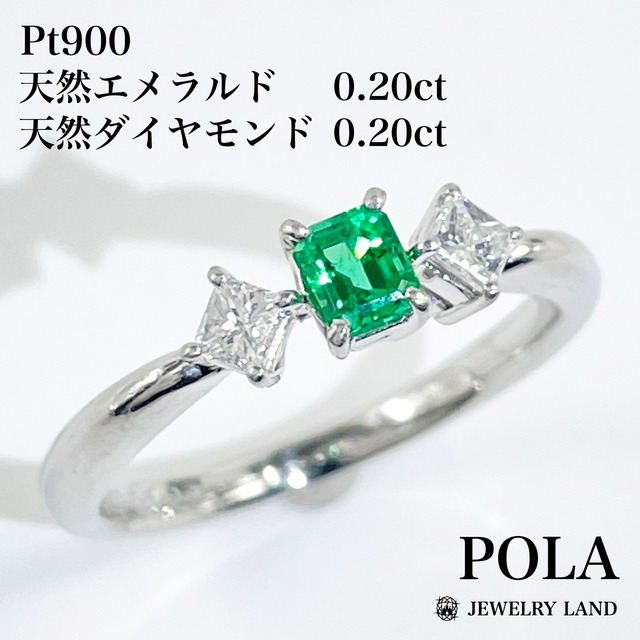 【POLA】Pt900 天然エメラルド 0.20ct ダイヤモンド 0.20ct