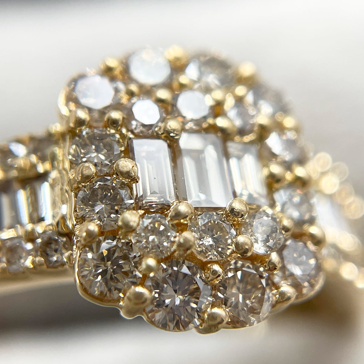 流れるようなゴールドのラインに、大小のダイヤがリズミカルに並ぶ洗練されたデザイン♪