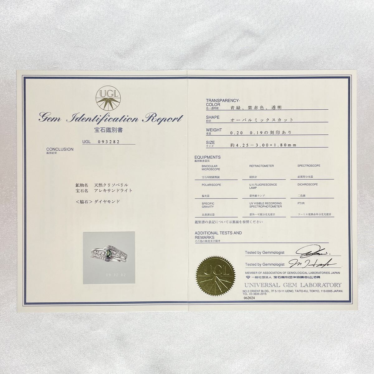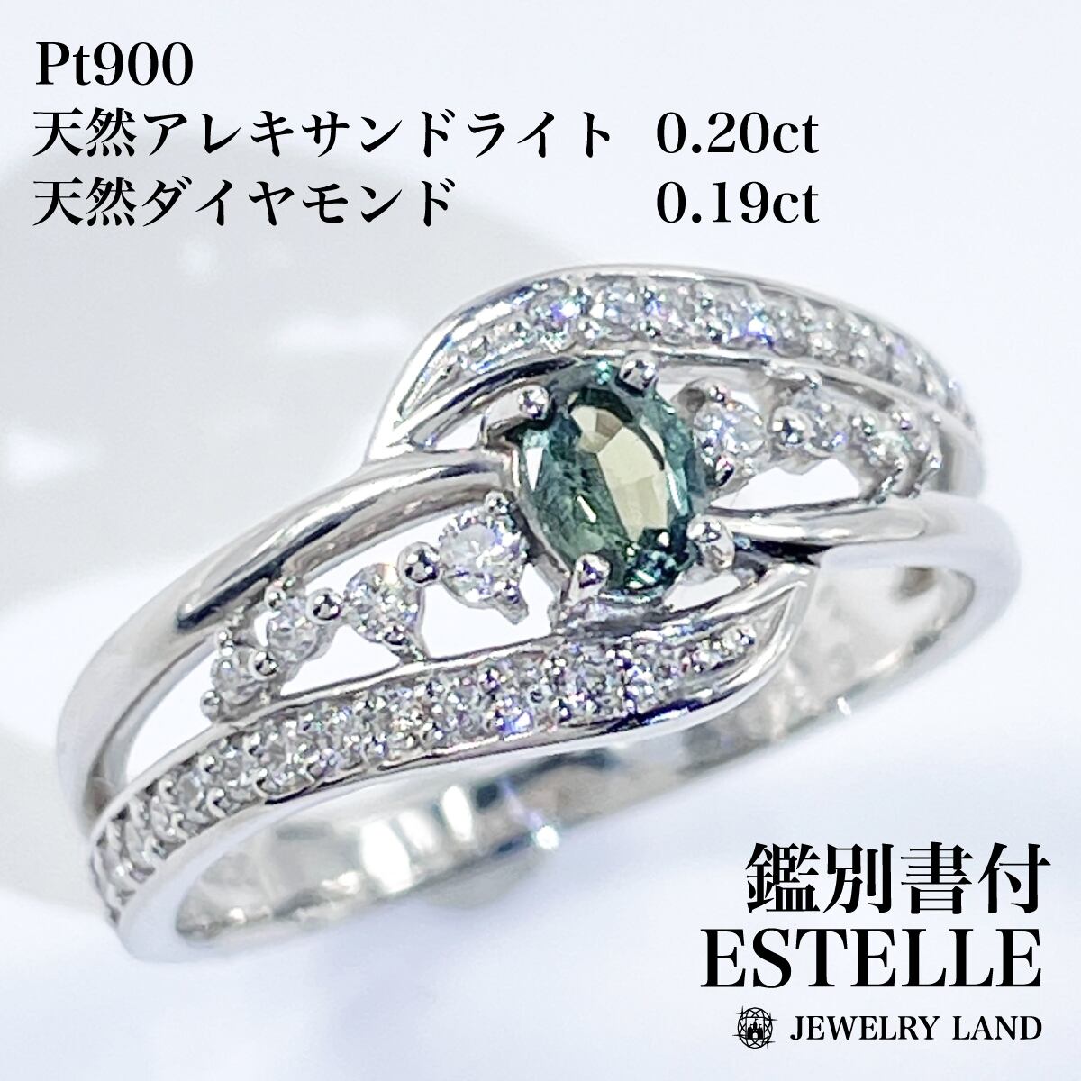 【ESTELLE】Pt900 アレキサンドライト 0.20ct ダイヤ 0.19ct