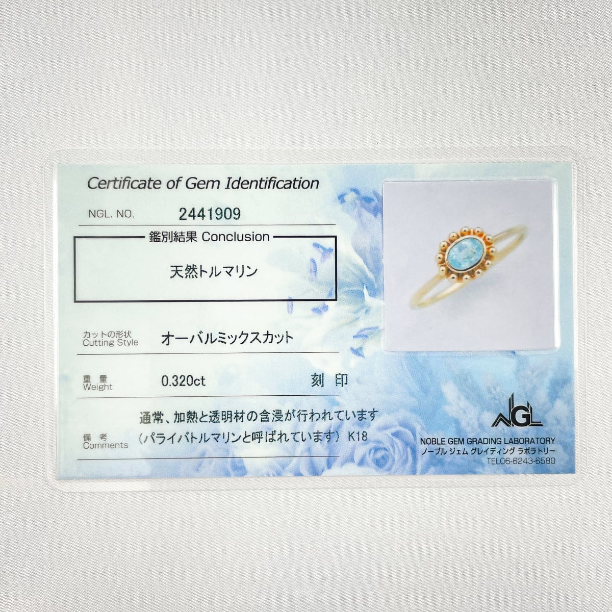 K18 天然パライバトルマリン 0.32ct リング